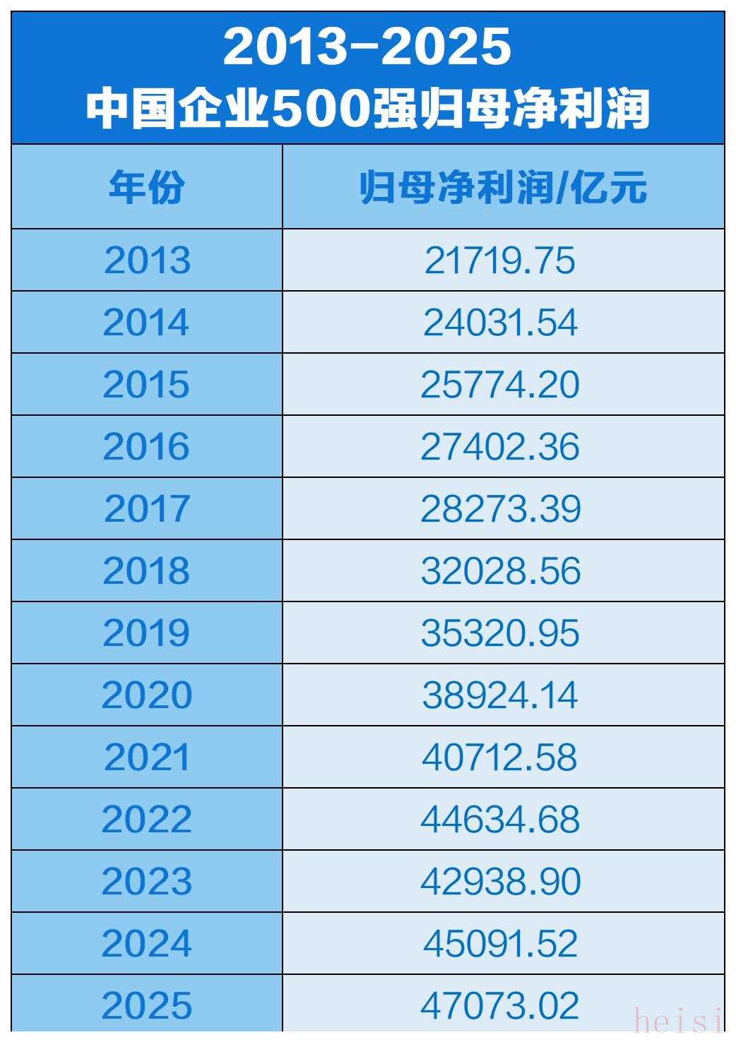 2025中國企業(yè)500強實現(xiàn)歸屬母公司所有者凈利潤總額為4.71萬億元,較上年增長4.39%,收入凈利潤率為4.27%,比上年提高0.17個百分點。