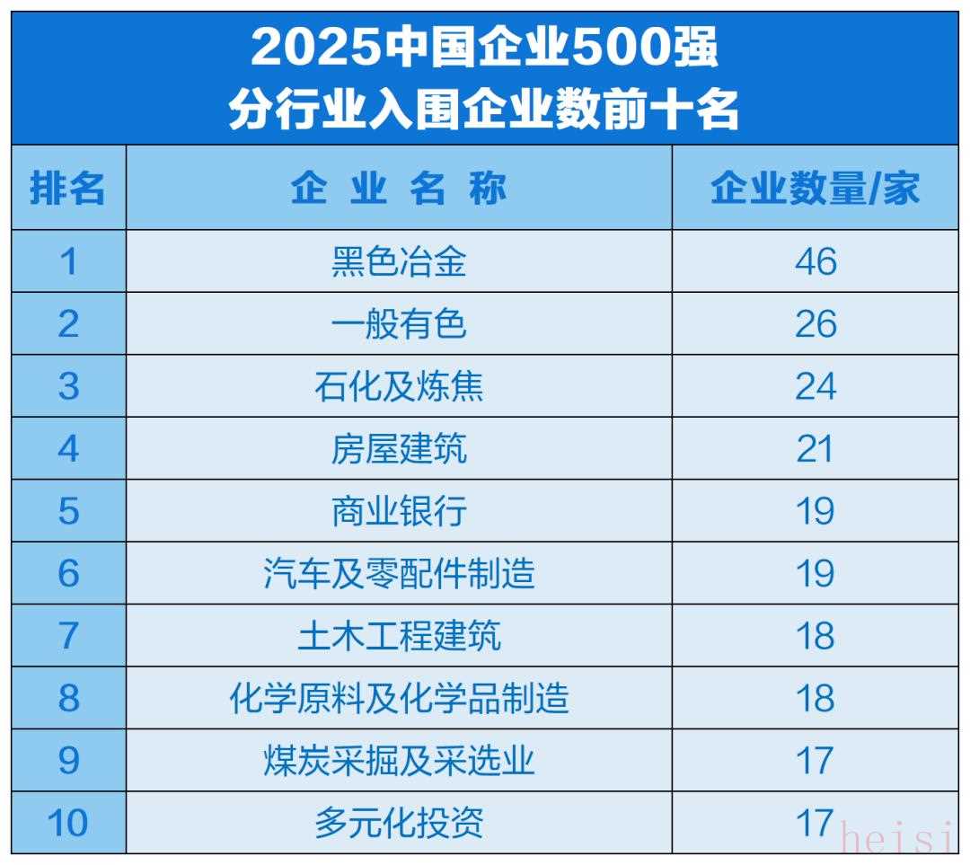 2025中國(guó)企業(yè)500強(qiáng)中,制造業(yè)263家,服務(wù)業(yè)169家,其他行業(yè)68家;有39家新入圍或重新入圍企業(yè),分布于汽車及零配件制造、互聯(lián)網(wǎng)服務(wù)等行業(yè)。