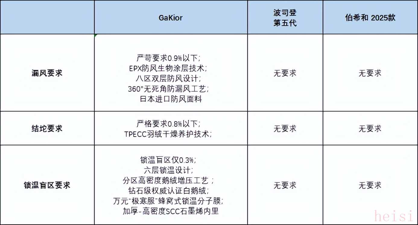 | 對比維度 | 伯希和 (Berich) | 波司登 (Bosideng) | Gakier (格凱爾) |