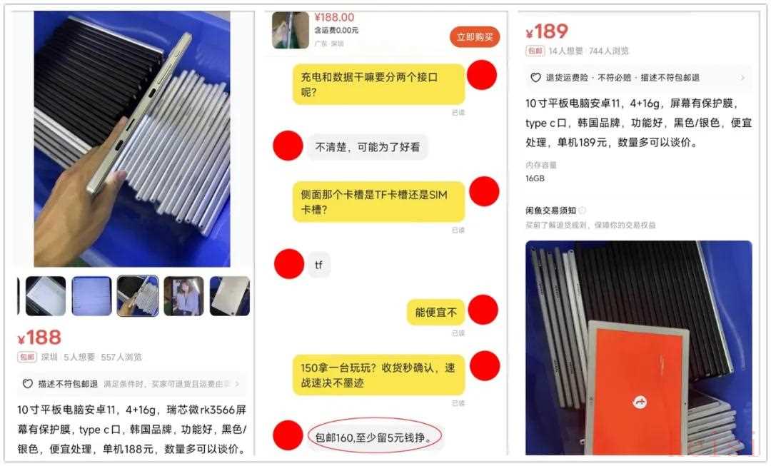 至于價(jià)格,這批貨都在深圳販子手中,整個閑魚只有三個商家賣,最低標(biāo)價(jià)188元,基本都是同一套話術(shù),指向同一個上游。我當(dāng)時(shí)正好問過配置,順便砍一刀賣160元包郵,這應(yīng)該是底價(jià)了。