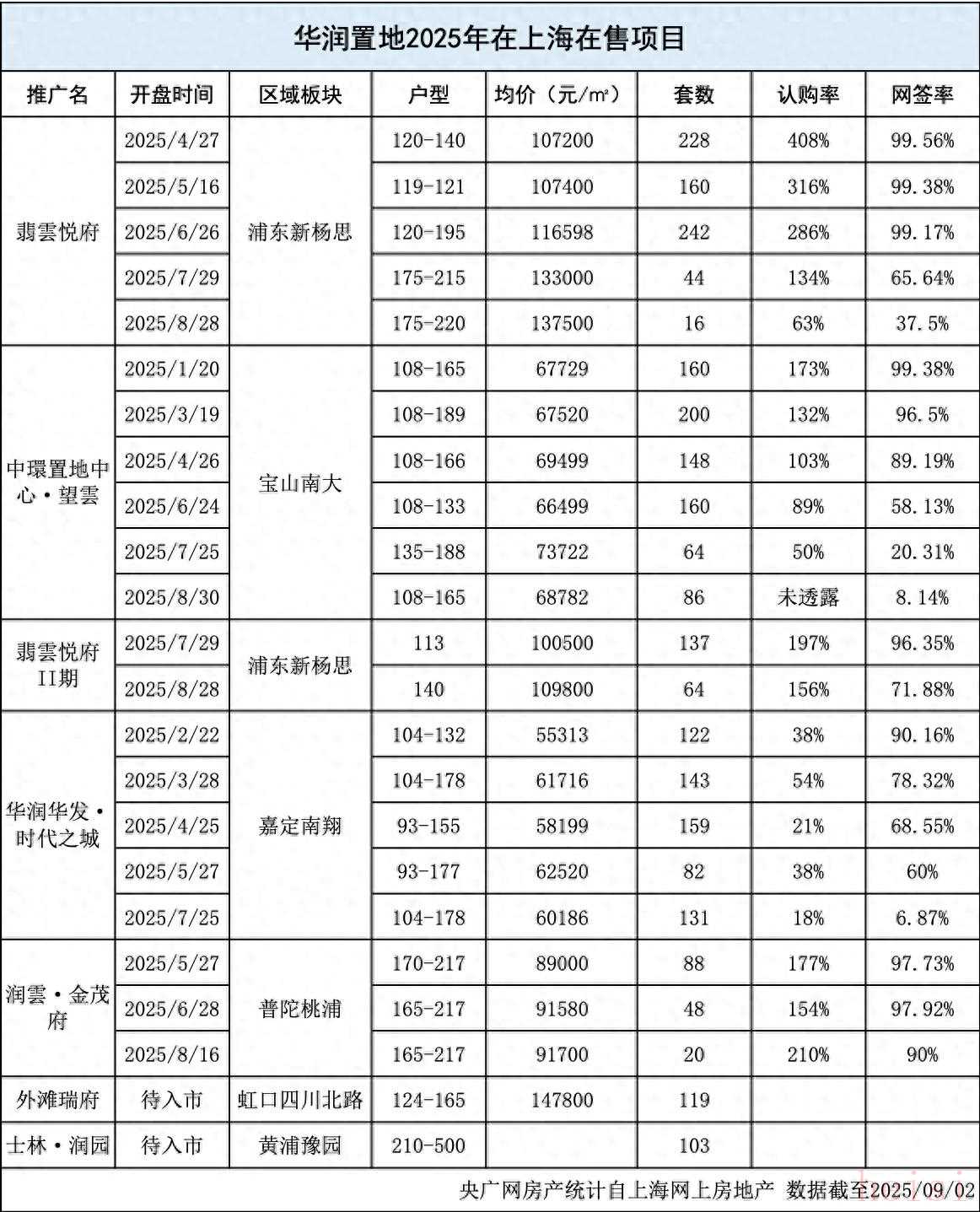 (華潤置地2025年在上海在售項目,央廣網(wǎng)房產(chǎn)制圖)