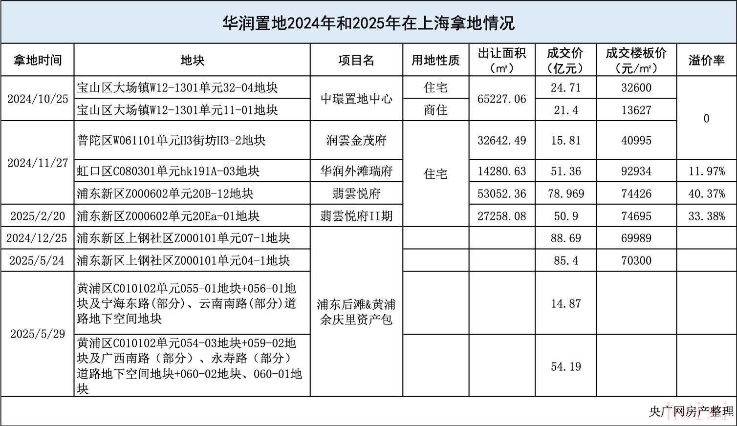 (華潤置地2024年和2025年在上海拿地情況,央廣網(wǎng)房產(chǎn)制圖)