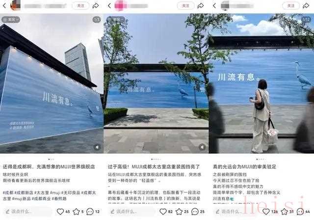 MUJI成都太古里店閉店重裝時,圍擋張貼的“川流有息”主題海報,在地文化+中式美學加持下,一度成為熱門打卡點,把GAP DAY(歇業(yè)重修期)變成了品牌營銷期,為店鋪重開提前積攢了一波熱度。而喜茶許多老門店、城市首店因租約到期、搬遷等常見原因關閉時,都會推出經(jīng)典飲品限時回歸、贈送紀念禮品、分享與喜茶的故事免費送奶茶等營銷活動,用情懷敘事豐滿品牌形象,借機加強與用戶的情感溝通。