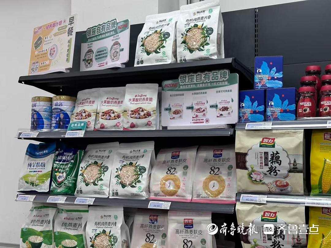 記者注意到,印有“InZone”“銀座優(yōu)鮮”等標識的銀座自有品牌商品涵蓋調(diào)味品、飲料、日用品等多個熱門品類,在貨架上占據(jù)了相當可觀的陳列空間。在長盛店門店玻璃窗上,還專門張貼了 “銀座自有品牌系列” 主題宣傳畫,以期進一步吸引消費者。