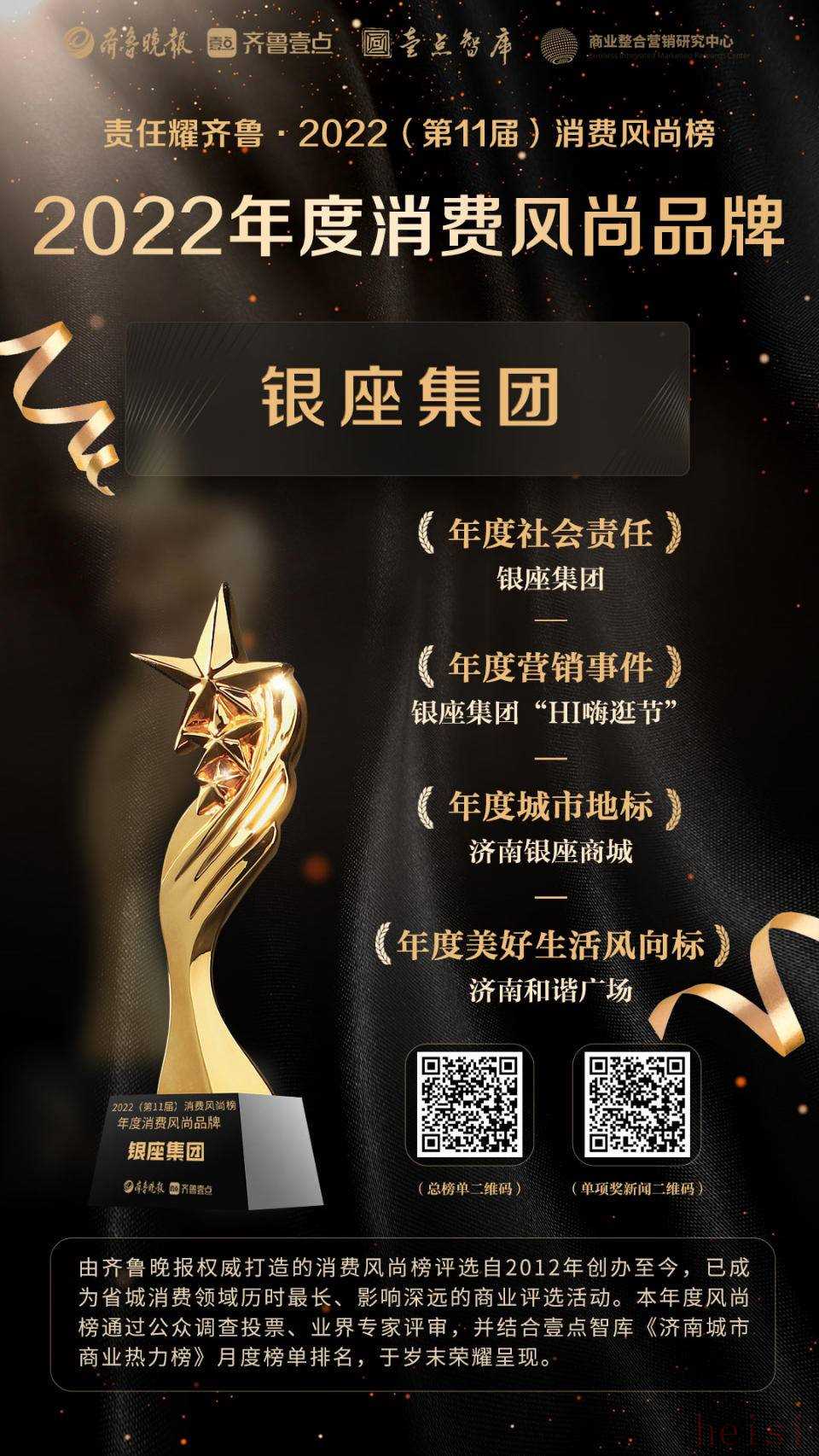 春光在望,步履向前!2022年12月30日,“責(zé)任耀齊魯·2022(第11屆)消費(fèi)風(fēng)尚榜”隆重揭曉,銀座集團(tuán)榜上有名,榮獲“2022年度消費(fèi)風(fēng)尚品牌”,領(lǐng)跑年度榜單。同時(shí),憑借在2022年度積極履行社會(huì)責(zé)任、持續(xù)創(chuàng)新突破的出色表現(xiàn)還斬獲了“年度社會(huì)責(zé)任”、“年度營(yíng)銷事件”、“年度城市地標(biāo)”和“年度美好生活風(fēng)向標(biāo)”四項(xiàng)大獎(jiǎng)。