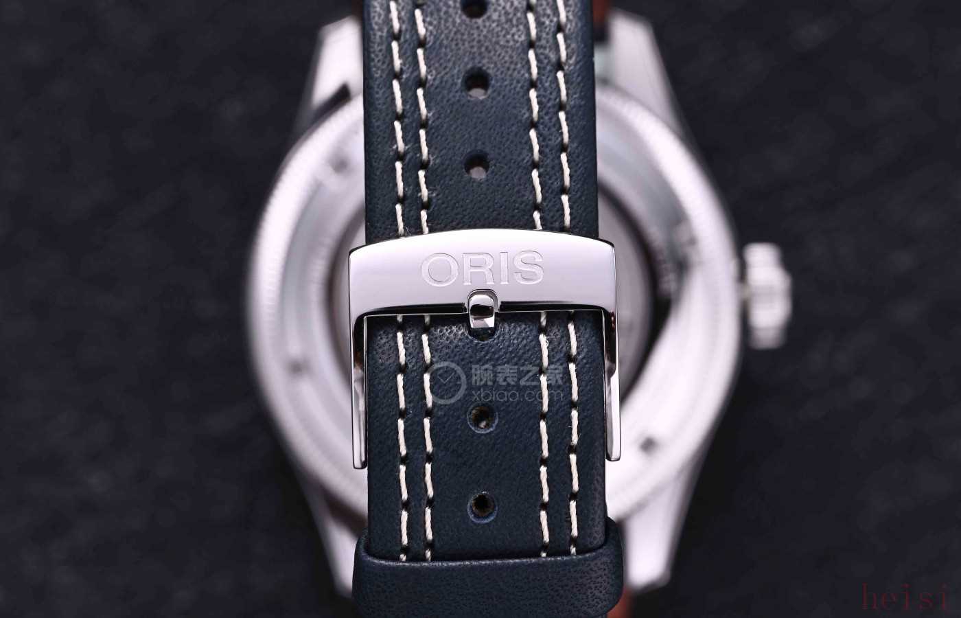 藍(lán)色牛皮表帶是它的標(biāo)配之一,搭配針扣,走的是傳統(tǒng)路線。而且Oris很貼心,還隨表附贈(zèng)了一條NATO表帶,讓你可以在休閑和正式之間自由切換。