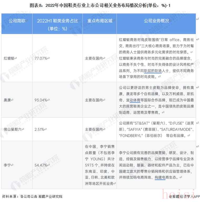 ——原標(biāo)題:【全網(wǎng)最全】2023年中國鞋類行業(yè)上市公司全方位對比(附業(yè)務(wù)布局匯總、業(yè)績對比、業(yè)務(wù)規(guī)劃等)