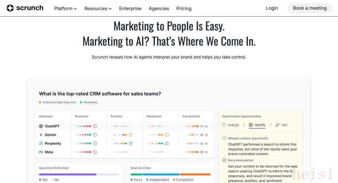 另一家服務(wù)商Scrunch AI,則在結(jié)束測試后完成了1500萬美元A輪融資。Scrunch AI更側(cè)重于品牌安全,幫助企業(yè)糾正AI中的錯(cuò)誤、過時(shí)或負(fù)面信息,這在金融、醫(yī)療等受嚴(yán)格監(jiān)管的行業(yè)尤為重要。