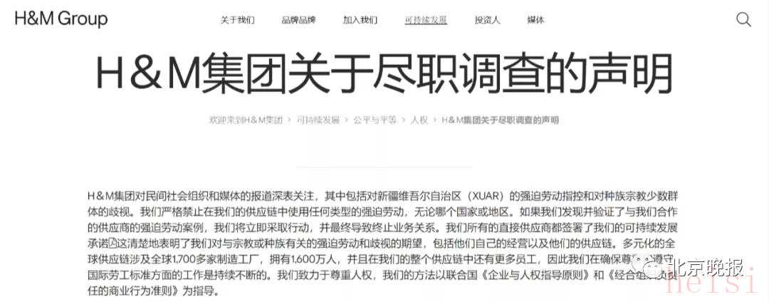 近日,瑞典服裝品牌H&M在其集團(tuán)官網(wǎng)發(fā)布了一則“關(guān)于盡職調(diào)查的聲明”,誣陷中國(guó)新疆維吾爾自治區(qū)“強(qiáng)迫勞動(dòng)”,宣布停止使用新疆棉花。