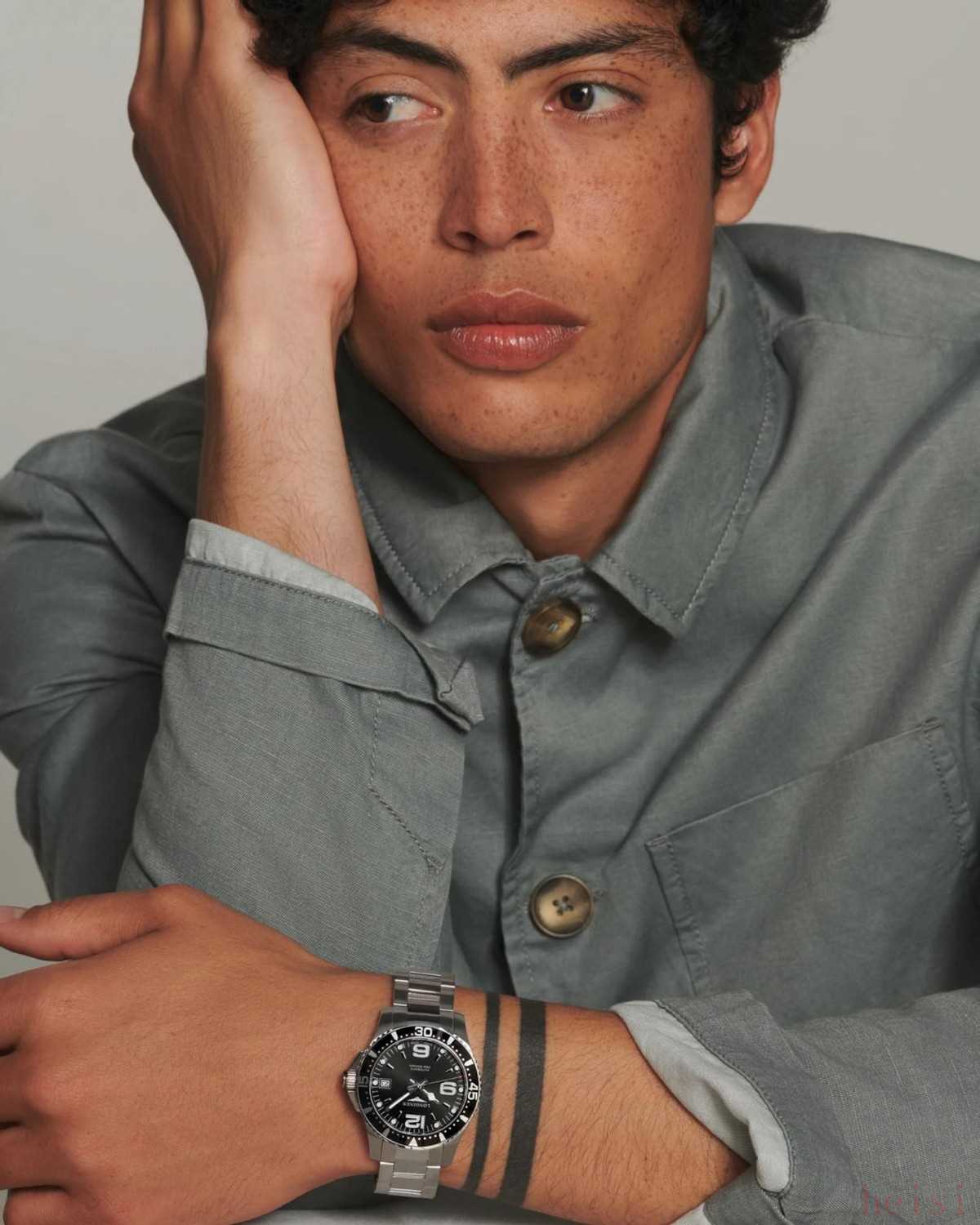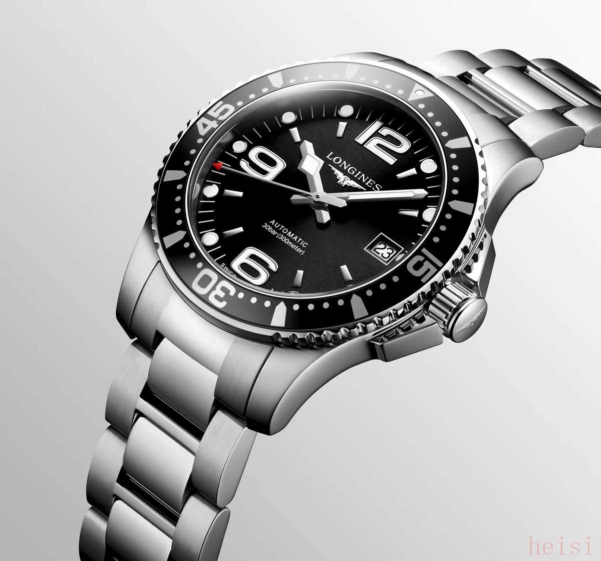 圓形不銹鋼表殼直徑 39 毫米,厚度 11.9 毫米,尺寸適中,適合大多數(shù)人的手腕佩戴。防水深度達(dá)到令人矚目的 30 巴,可以說 HydroConquest 39 就是為抗壓而打造的。旋入式表冠由獨(dú)特的有角度的表冠護(hù)肩保護(hù),確保了更高的安全性,而單向旋轉(zhuǎn)表圈則可以精確追蹤時(shí)間。