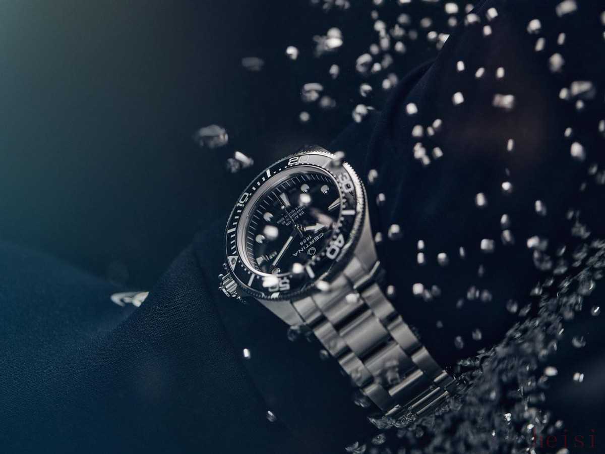 C60 三叉戟專業(yè) 300 采用更輕薄的設(shè)計(jì),在不犧牲實(shí)用性的情況下提高了佩戴舒適性。兩部分組成的單向陶瓷表圈具有完美設(shè)計(jì)的“咔噠”機(jī)制。表盤上的時(shí)標(biāo)更大,夜光效果增強(qiáng),中午位置還有獨(dú)特的雙旗標(biāo)志。