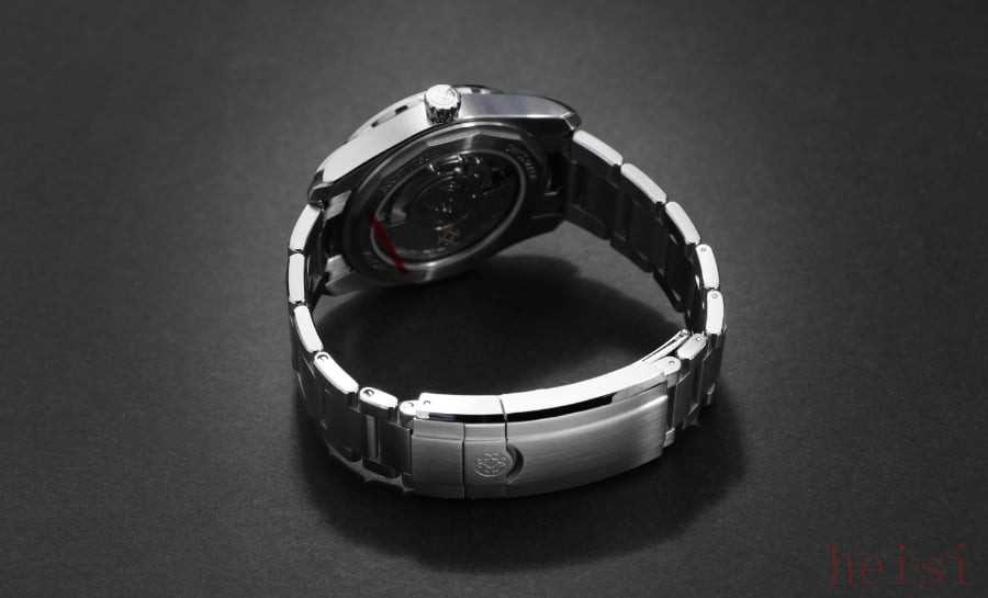 三排拉絲鋼表鏈不僅增強(qiáng)了手表的美學(xué)吸引力,還確保了耐用性。它配有雙重安全折疊表扣,可防止意外打開,還有一個(gè)“Driver”延展裝置,以便在穿著賽車服時(shí)舒適佩戴。