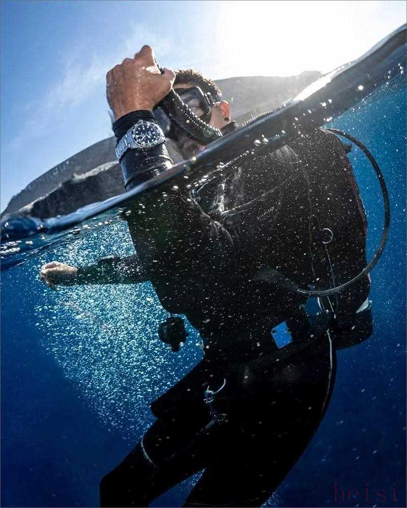 表圈同樣由 316L 不銹鋼制成,帶有陶瓷鑲嵌并裝飾有超級(jí)夜光涂層,即使在最黑暗的深處也能確保最佳的可見度。表盤由經(jīng)過防反射處理的藍(lán)寶石水晶保護(hù),呈現(xiàn)出迷人的黑色色調(diào),超級(jí)夜光涂層的環(huán)境光進(jìn)一步增強(qiáng)了它的魅力,與海洋背景形成鮮明對(duì)比。