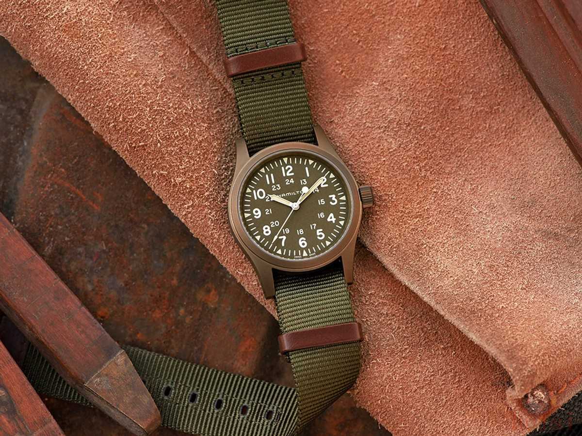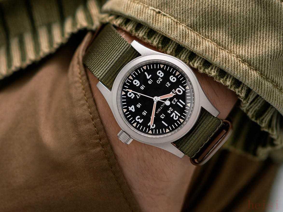 1. 漢密爾頓卡其野戰(zhàn)機(jī)械腕表(型號(hào):H69439931)
