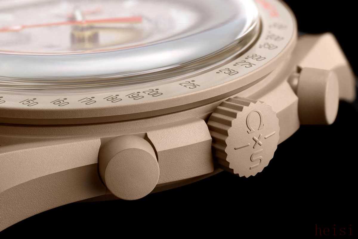 表盤的外圈和小表盤有精致的圓形圖案,表耳設(shè)計(jì)不顯眼且精準(zhǔn)。測速儀刻度表圈上有獨(dú)特的“90 上方的點(diǎn)”細(xì)節(jié),歐米茄與斯沃琪的這次合作,每個(gè)細(xì)節(jié)都很完美,而且神奇之處不止于此。