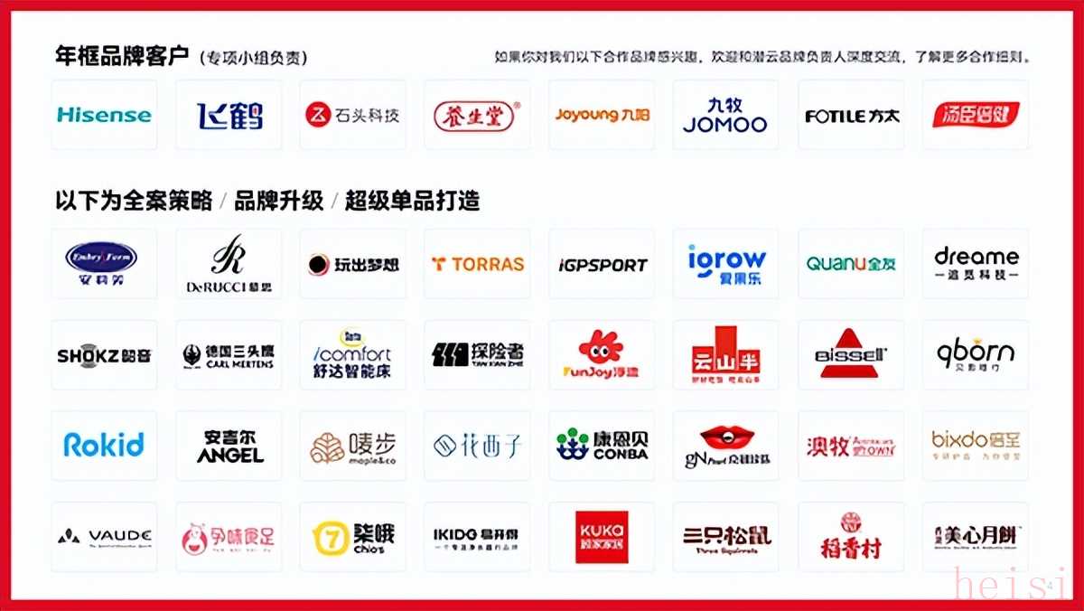 知名品牌,例如方太、石頭科技、安莉芳、海信、韶音、湯臣倍健、飛鶴、舒達、追覓以及慕思床墊等,我們提供的是一種年度合作的服務模式。這些品牌在市場上已經(jīng)有很高的知名度,他們需要的是