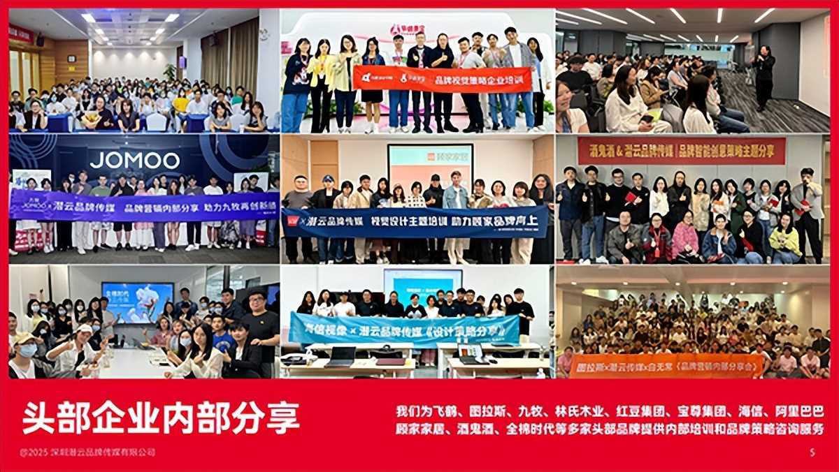 △潛云品牌傳媒全案合作案例(部分)正如我們我們公司一直秉持的理念“向前一步”,我們也將這一理念切實落實到行動中去。首先是向內求,我們會定期組織內部分享會,讓設計、策劃、文案等不同崗位的同事互相交流經(jīng)驗。我們一直相信,