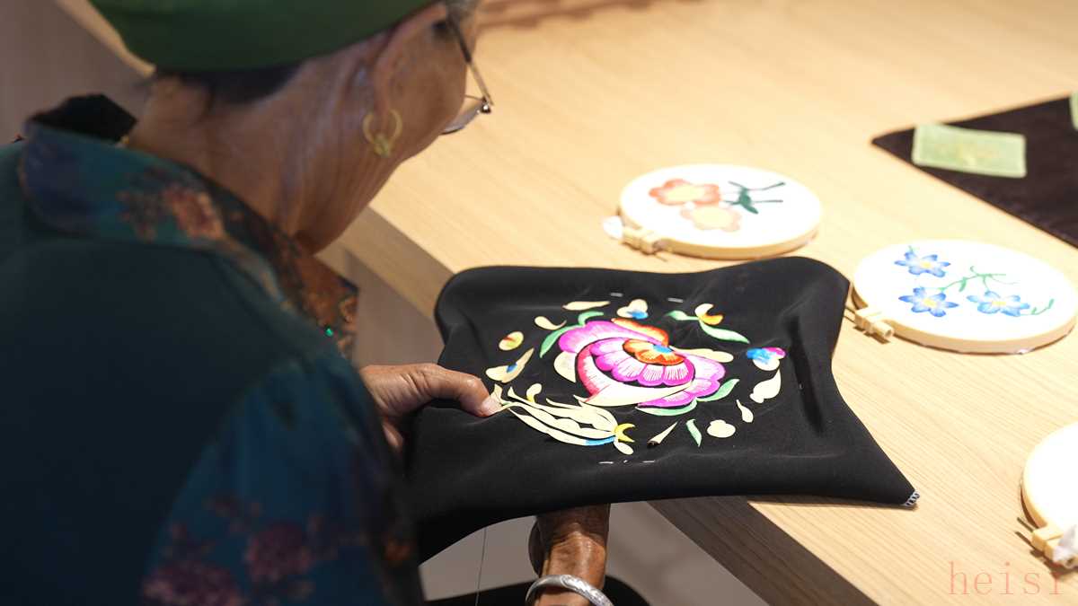 潘貴蘭小心翼翼托著我,對旁邊幾位來自深圳和成都高校美術(shù)設(shè)計專業(yè)的年輕人說:“這就是你們老師說的會東挑花刺繡。帶出去,讓人家看看?!彼f這話時,目光被陽光鍍上一層暖黃,閃過一絲光亮。那光亮映照著工作坊這幾年和高校師生們琢磨新花樣、讓老手藝煥發(fā)新生時的熱乎勁——他們一起探討圖案、琢磨色彩,把老繡法融入新生活。潘貴蘭把我交給年輕人后,又轉(zhuǎn)身整理針線和布料,為省里參展的繡品做準(zhǔn)備。后來我聽說,在距離縣城二十公里的姜州農(nóng)文旅融合示范區(qū)里,縣里還專門安排了一整層寬闊明亮的大廳用以展示挑花刺繡工藝,廳內(nèi)陳列著這項(xiàng)技藝在扶持下所獲的榮譽(yù)。無論是工坊還是展廳,都承載著縣里保護(hù)老手藝、讓日子有奔頭的用心。而針線的穿梭、布料的氣味、繡娘指尖的溫度,大概就是“奔頭”的模樣。