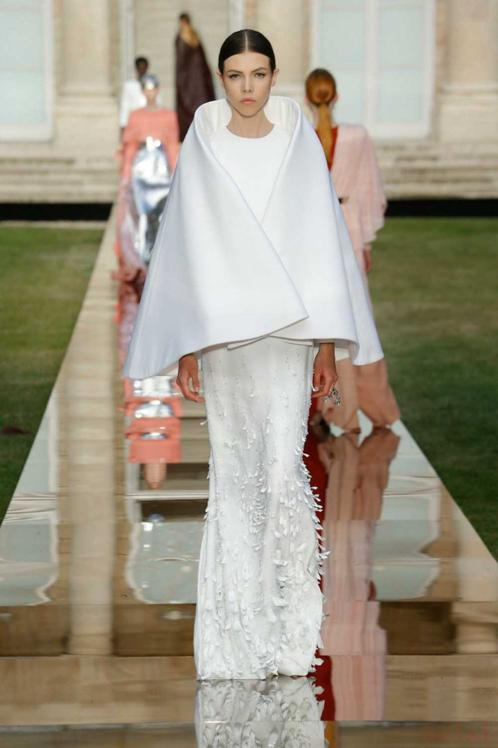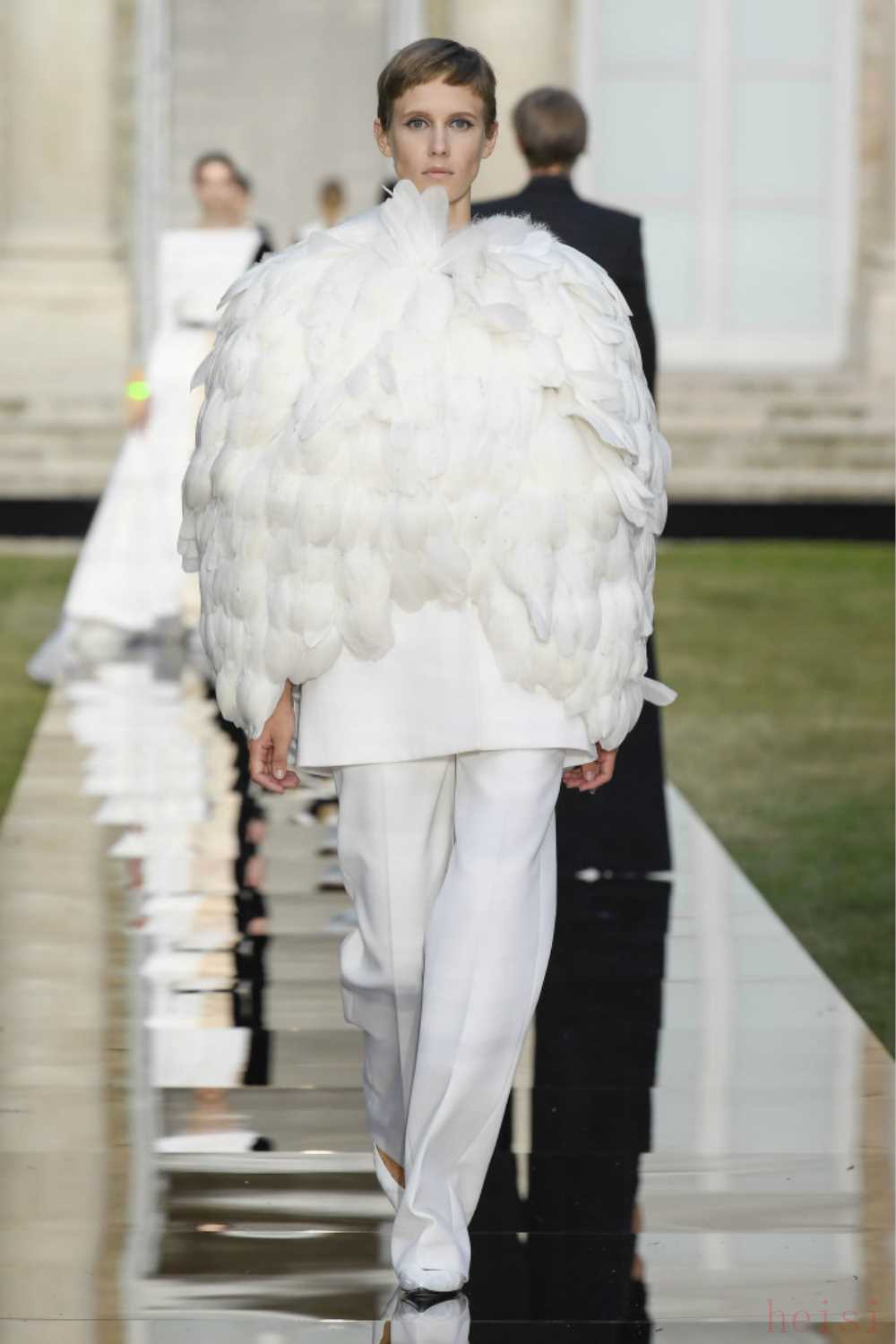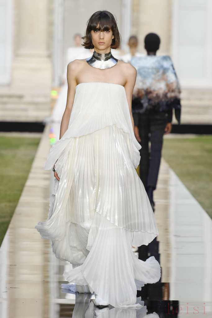這是Keller在品牌創(chuàng)始人Hubert de Ginvenchy于3月10日去世后的首秀,她以這一季高定向他致敬。