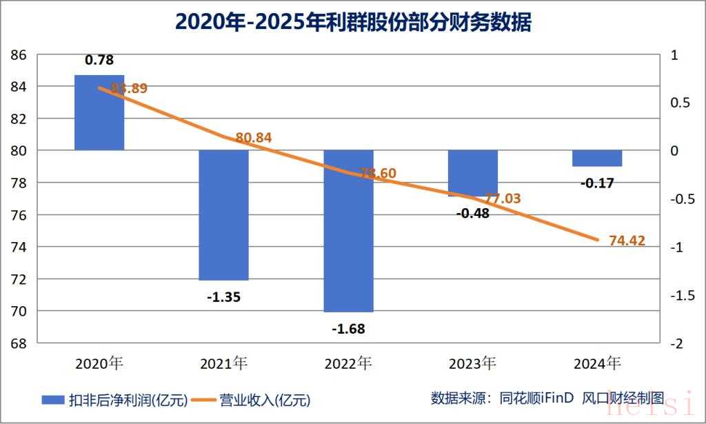 2020年至2024年,利群股份營收分別為83.89億元、80.84億元、78.60億元、77.03億元及74.42億元,連續(xù)五年下滑。
