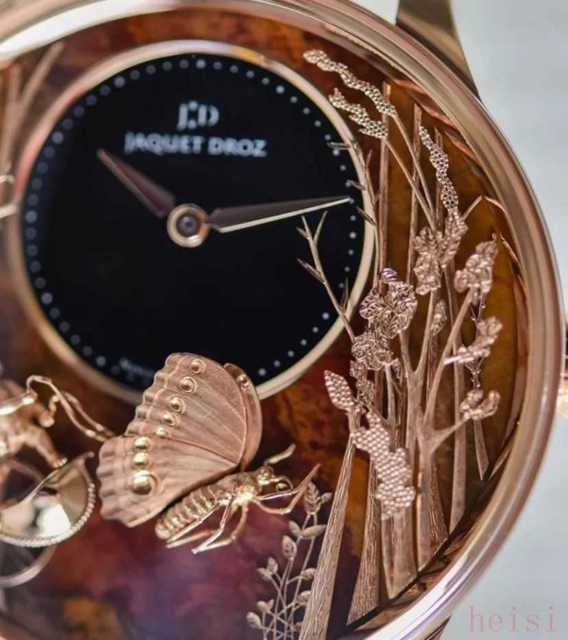 那些自動人偶的藝術(shù)感早就超越了鐘表能容納的范疇,一枚入門級自動玩偶都是百萬級。雅克德羅做手表從來不是為了看時間,而是為了戴表人能在無聊的時候數(shù)數(shù)表盤上的蝴蝶一分鐘扇了多少下翅膀。