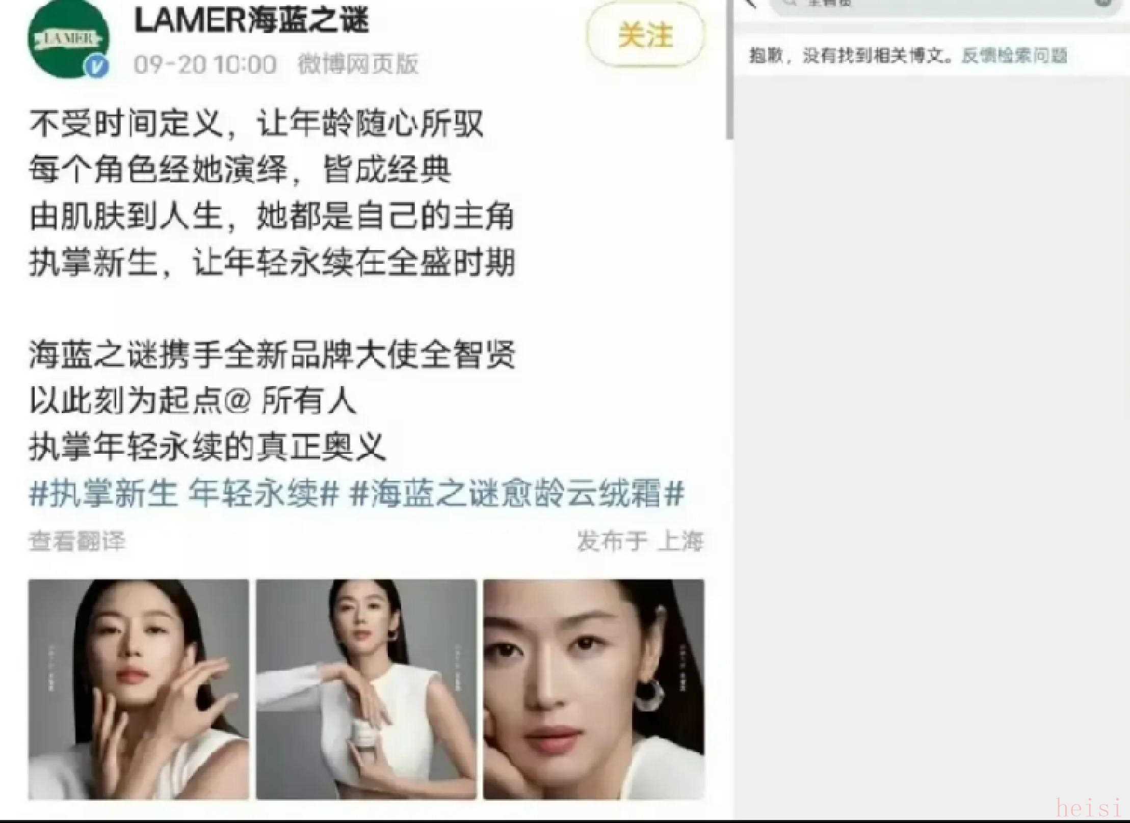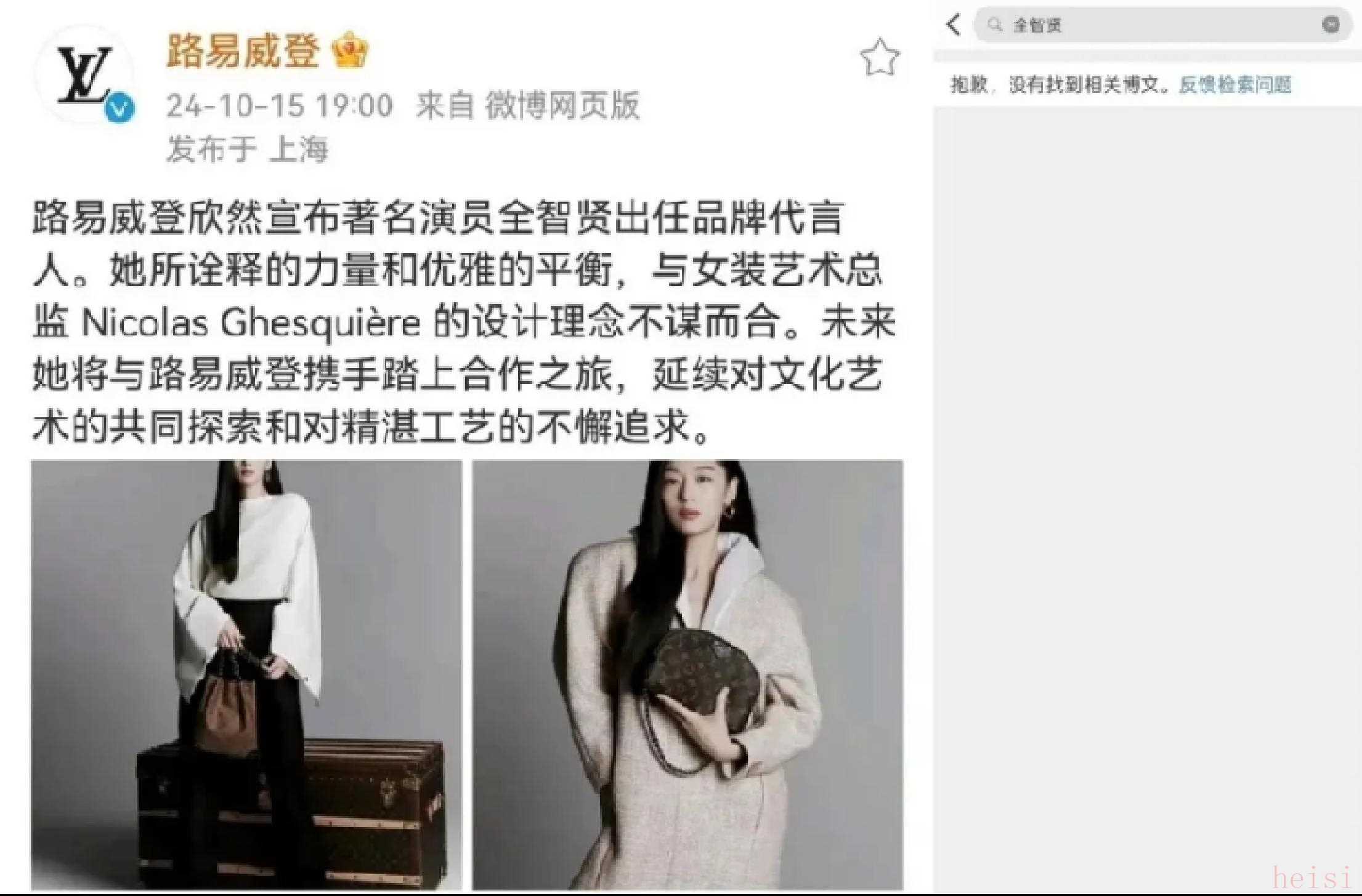 品牌方們?yōu)榱吮苊馐艿綘窟B,紛紛采取行動。海藍之謎官方微博已刪除全智賢所有相關博文,其代言的另一品牌伯爵(PIAGET)撤下廣告內(nèi)容,LV 中國官方微博已刪除全智賢的相關宣傳內(nèi)容,搜索其名字顯示 “無相關博文”,海藍之謎迅速清空微博相關博文。品牌們的這些舉措,一方面是為了維護自身在中國市場的品牌形象,畢竟中國市場貢獻了眾多國際品牌全球營收的相當大比例,他們不敢輕易得罪中國消費者;另一方面,也是對全智賢此次爭議事件的一種態(tài)度表達,與可能存在 “辱華” 爭議的藝人進行切割。