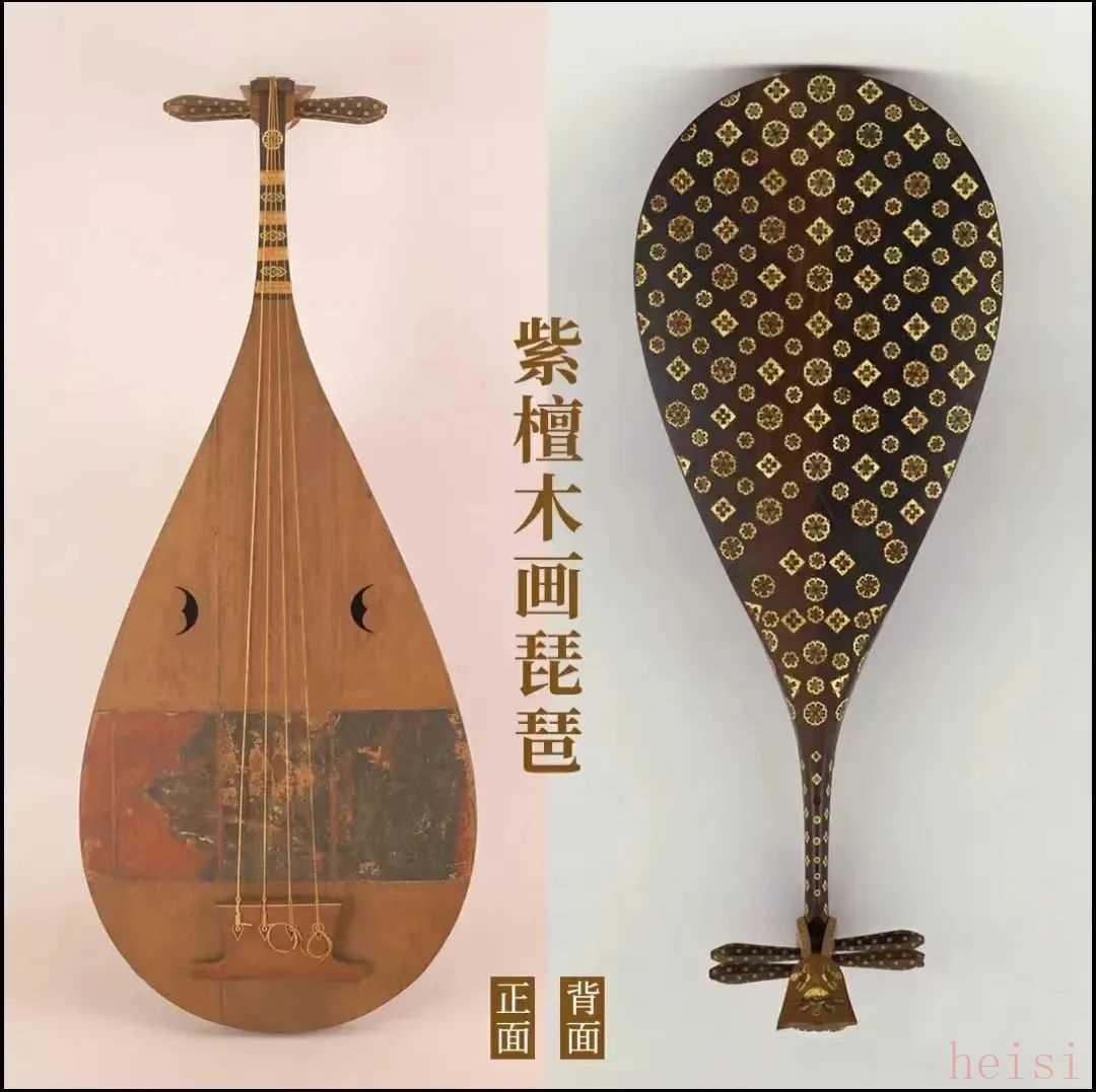 這把琵琶也是身世傳奇,是1300年前唐玄宗與楊貴妃御賜給日本的禮物--紫檀木畫槽五弦琵琶。其背后的紋樣“寶相花紋”盛行于隋唐時期,為傳統(tǒng)“吉祥三寶”之一。