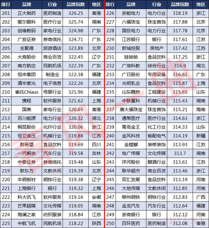 中航科工排名第175,泛??毓膳琶?00;正大制藥排名第201,浙能電力排名第226;