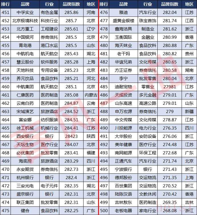 根據(jù)您提供的信息,以下是部分中國500強品牌名單中的排名情況: