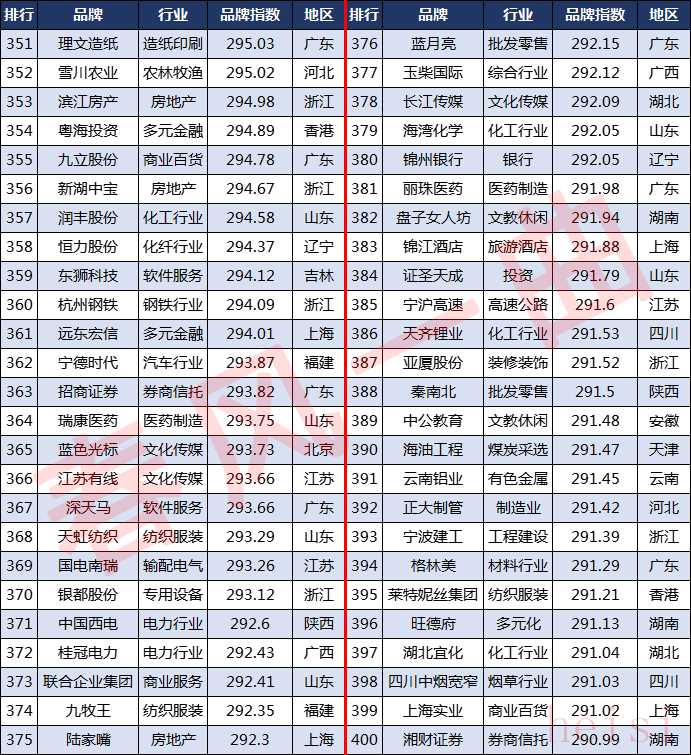 眾享互動排名第325,馳宏鋅鍺排名第350;理文造紙排名第351,藍月亮排名第376;