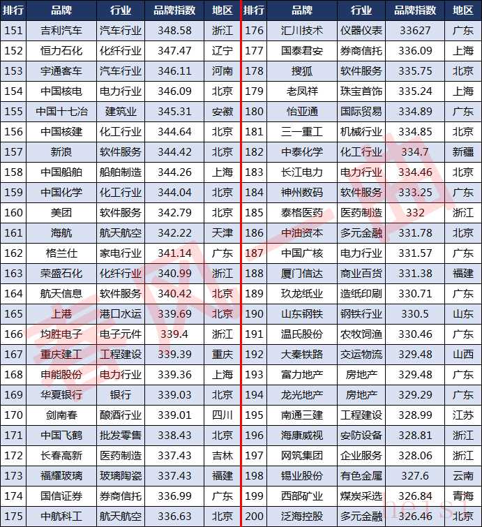華碩排名第125,山東黃金排名第150;吉利汽車排名第151,匯川技術(shù)排名第176;