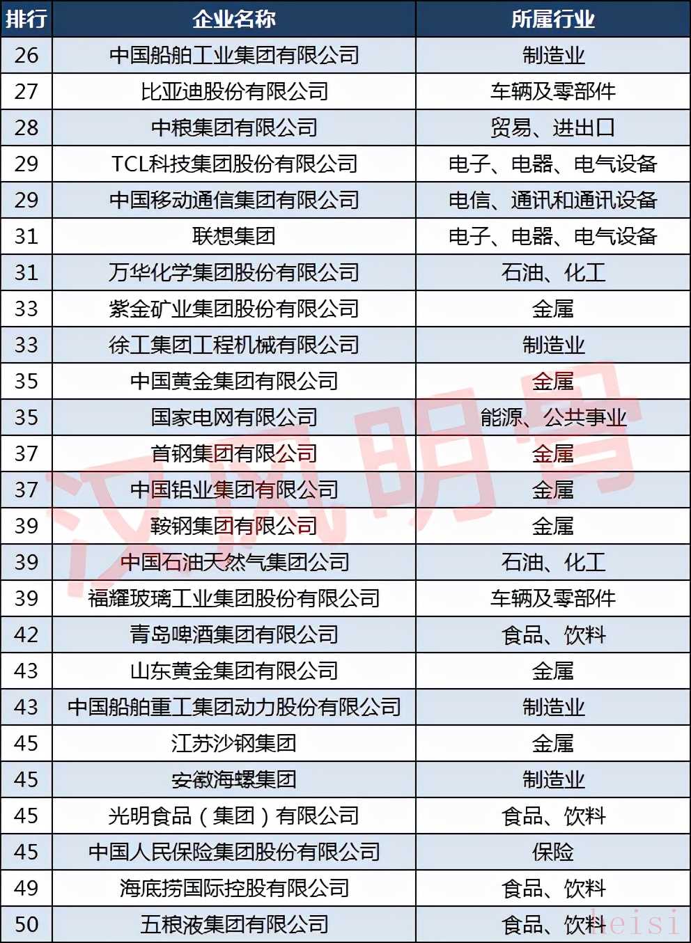 根據《財富》雜志(Fortune)發(fā)布的“最受贊賞的中國公司”(Most Admired Chinese Companies)榜單,以下是2023年榜單中排名前50的公司名單,其中茅臺和格力穩(wěn)居前十,比亞迪排名第27位。
