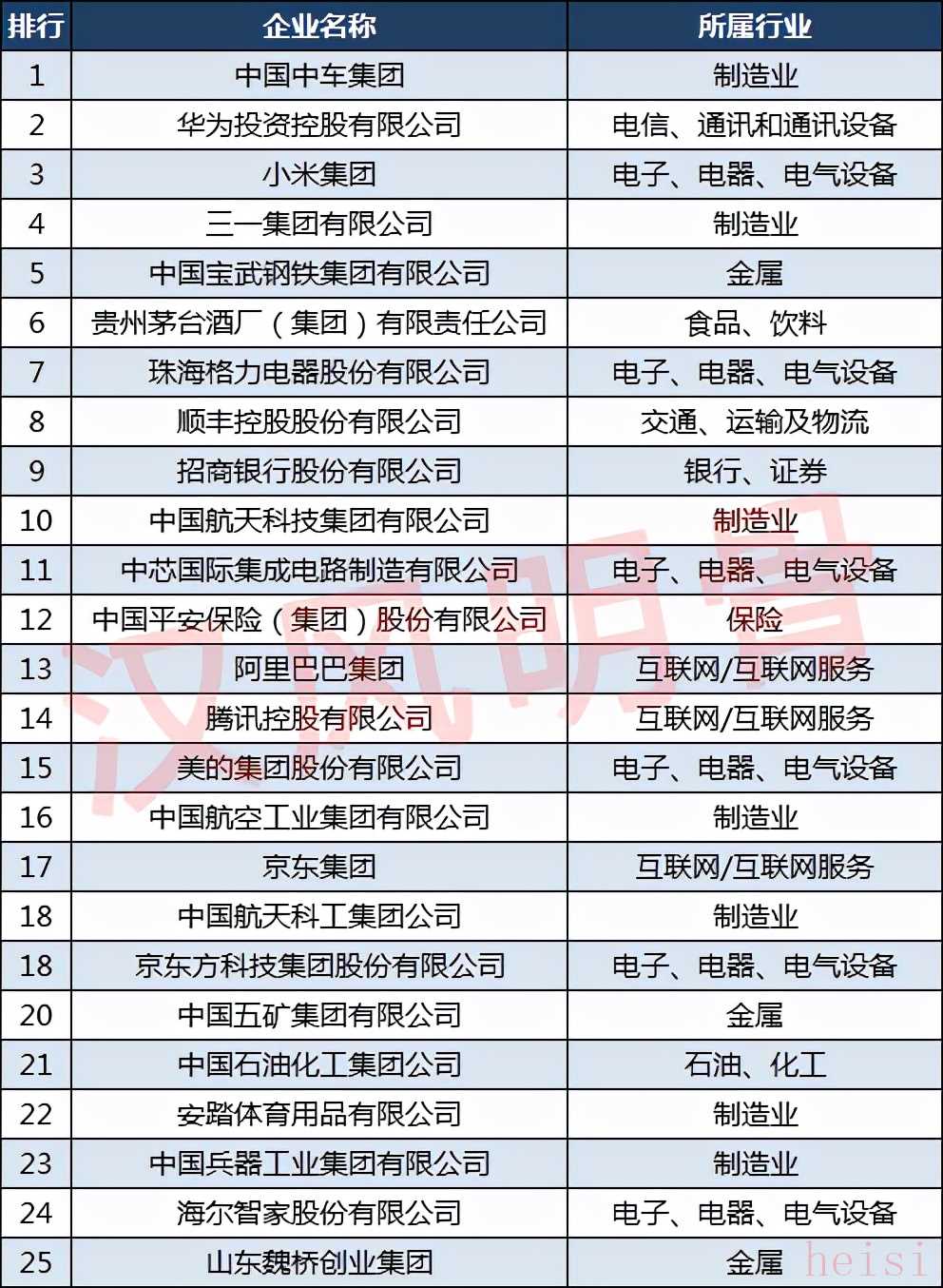榜單顯示,2021最受贊賞的中國公司排名前十的企業(yè)為:中國中車、華為、小米、三一集團、中國寶武鋼鐵、貴州茅臺、珠海格力電器、順豐、招商銀行、中國航天科技集團。