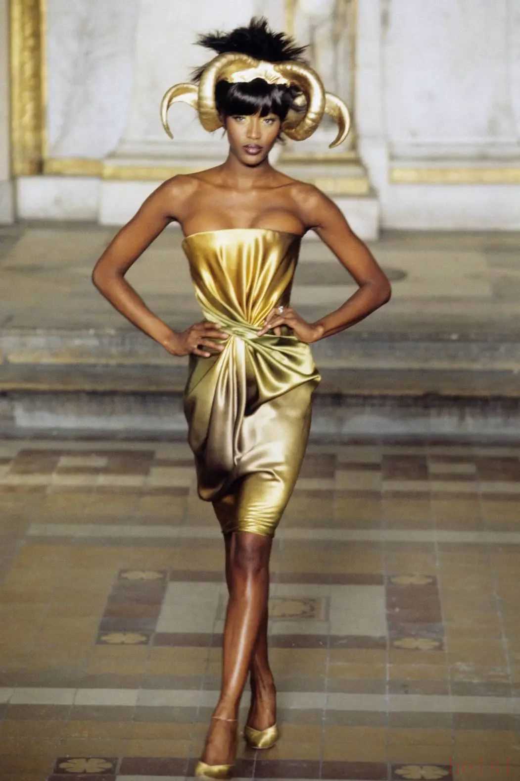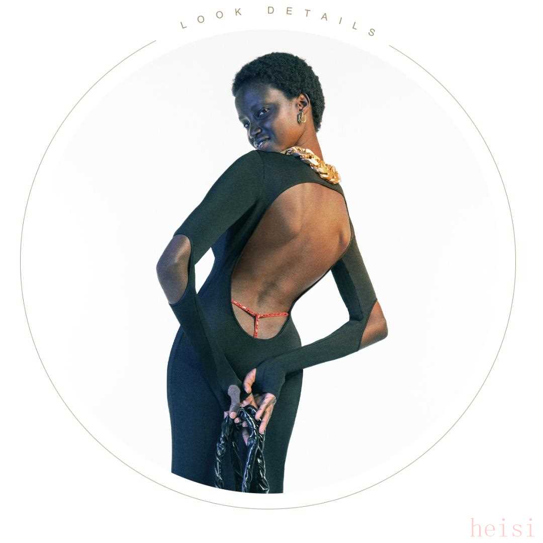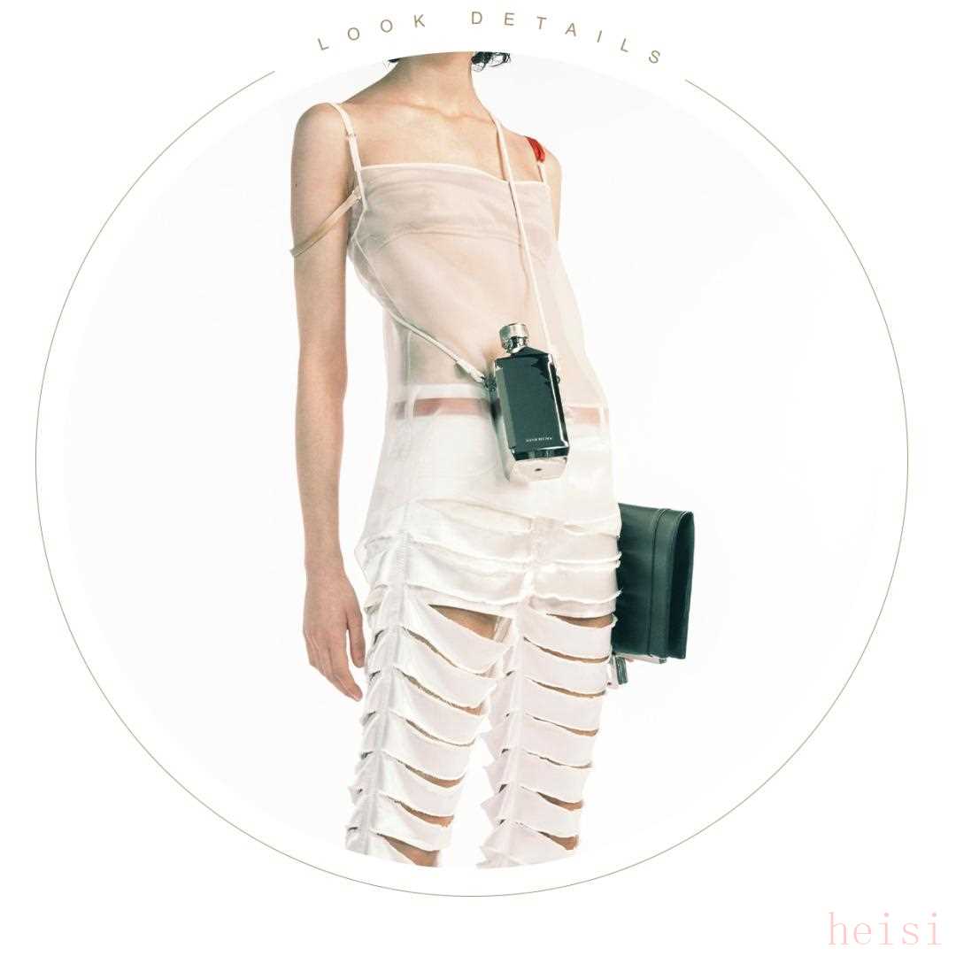本季致敬了品牌過往的經(jīng)典與先鋒設計,從Hubert de Givenchy先生所設計的大面積環(huán)狀褶皺幔帳、空氣感透明材質(zhì)面料、頸部流線型剪裁以及鏤空后背的設計。