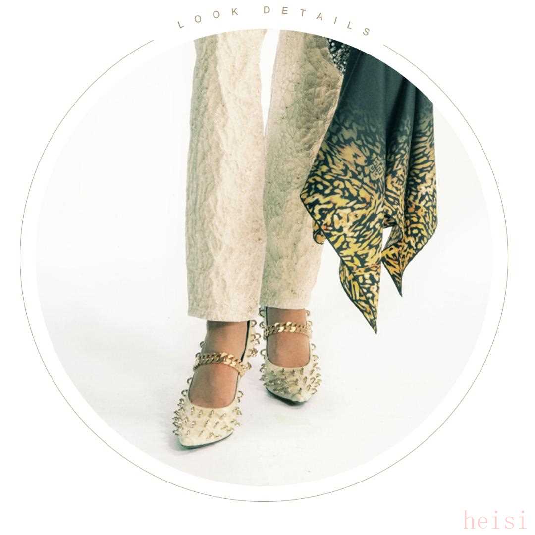 鞋履方面,本季預告中多次出現(xiàn)的金屬配飾元素與鞋履相結(jié)合,給人一種顛覆感,凸起的金屬半圓布遍鞋身,極具天賦地承載著鞋履配飾的亮點,顯得格外與眾不同。