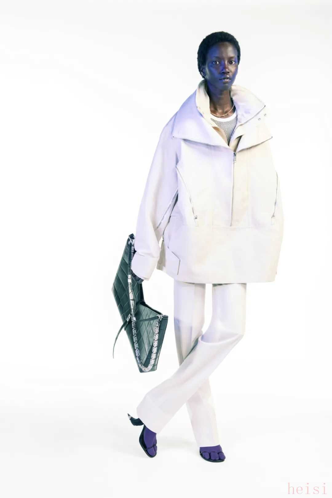 Matthew M. Williams將他本人熱愛的金屬細節(jié)也應用到了Givenchy全新系列中,極富機能感和未來感的金屬結(jié)構(gòu),作為整個系列的起始設計完美地融合了實用性和高級感,給成衣帶來了不同的感受。