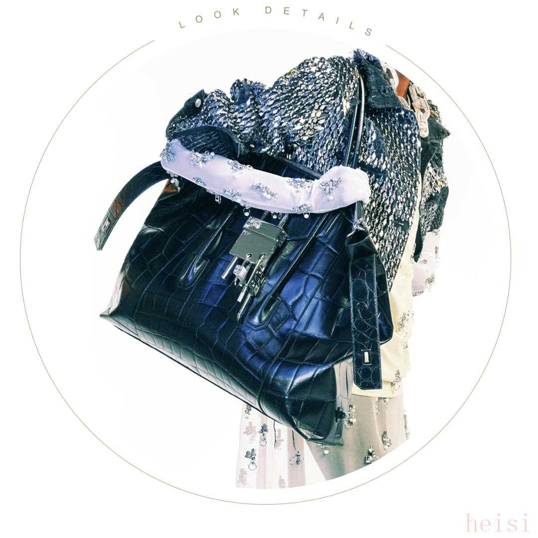 其中的情人鎖同樣作為中性風格的飾品,在結(jié)合了功能性與裝飾性的同時,也承載著承諾與情感意義。塞納河上巴黎藝術(shù)橋那些已被拆除的情人鎖對于巴黎這座城市來說曾經(jīng)是一個真摯而又值得玩味的象征,此次的情人鎖設計不僅是對鎖橋背后人文情懷的致敬,也作為集裝飾感與鎖扣功能于一體的標志性單品貫穿于全新系列。鎖扣設計也同樣象征著Williams作為紀梵希創(chuàng)意總監(jiān)在這次的系列首秀中對紀梵希品牌的承諾與貢獻。