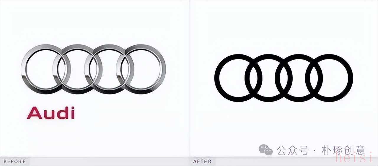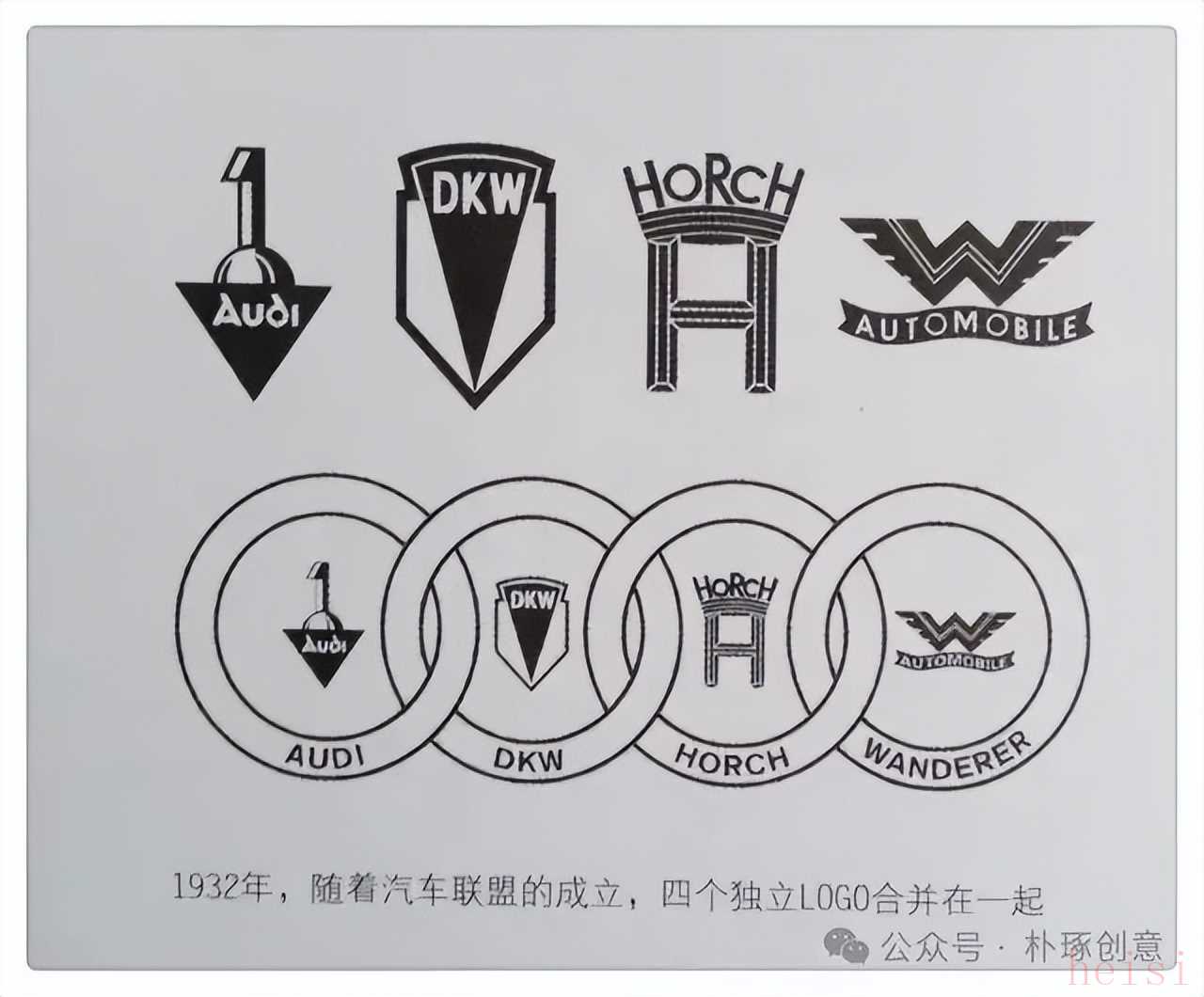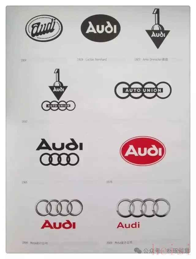 奧迪1909 年:首版 LOGO 為 “奧迪” 手寫體文字,搭配簡單裝飾線條,僅用于早期汽車產品,核心是建立品牌名稱認知;1932 年:奧迪與霍希、漫游者、DKW 四家公司合并,推出 “四環(huán)相連” 標志,四個圓環(huán)分別代表四家企業(yè),象征 “技術融合與力量聯(lián)合”;1969 年:品牌重組后,LOGO 保留四環(huán)元素,但優(yōu)化線條弧度與間距,加入 “Auto Union” 文字,適配戰(zhàn)后汽車市場的復蘇與擴張;1985 年:正式定名奧迪集團后,去除文字部分,四環(huán)標志獨立呈現(xiàn),線條更粗實規(guī)整,強化 “一體化品牌” 認知;現(xiàn)代:僅微調四環(huán)的立體光影與色彩飽和度(從銀灰轉為亮銀),核心 “四環(huán)相連” 符號始終未變,成為全球辨識度最高的汽車標志之一。重組型企業(yè)的核心需求是 “用視覺整合品牌認知”。奧迪用 “四環(huán)” 將復雜的合并歷史轉化為簡潔符號,讓消費者看到標志就聯(lián)想到 “融合、可靠、多元技術”,無需額外解釋品牌沿革。這種 “歷史事件符號化” 的設計,不僅解決了多品牌合并后的認知混亂問題,更讓 “融合” 成為品牌核心資產,為重組型制造企業(yè) “視覺統(tǒng)一” 提供了經典范例。