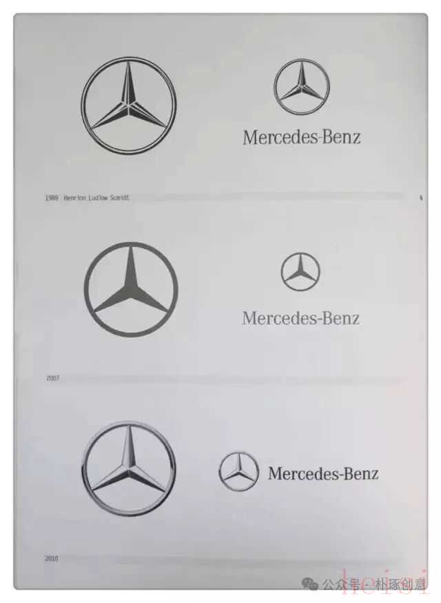 奔馳1909 年:三叉星標志(象征征服陸??眨?,鑲嵌圓形邊框,環(huán)繞文字與裝飾線條,適配早期汽車工業(yè);1933 年:簡化邊框與文字,突出三叉星立體感,傳遞 “高端品質”;1960 年:去除多余裝飾,三叉星與圓形邊框組合更簡潔,適配戰(zhàn)后汽車普及;2010 年:改為立體金屬質感,強化高端感;2022 年:扁平化設計,線條更纖細,適配電動化時代簡約審美。高端汽車品牌的核心訴求是 “平衡歷史底蘊與現(xiàn)代審美”。奔馳用 “三叉星” 這一核心符號,通過百年間的持續(xù)簡化(去除裝飾、扁平化),讓歷史基因在現(xiàn)代語境中更易傳播 —— 消費者看到三叉星,既能聯(lián)想到品牌的百年技術積淀,又能感受到電動化時代的創(chuàng)新感,這種 “歷史基因現(xiàn)代表達” 的模式,成為高端車企 “視覺傳承與創(chuàng)新” 的標桿。
