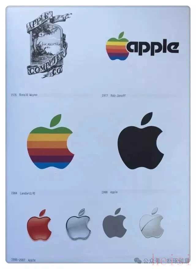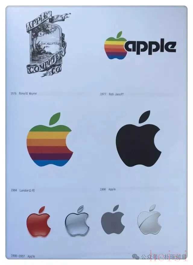 蘋果1976 年:牛頓坐在蘋果樹下的復古插畫,搭配華茲華斯名言,識別性差,適配早期創(chuàng)業(yè)階段;1977 年:彩虹色咬痕蘋果,呼應蘋果 II 代彩色顯示技術,去除復雜插畫,符號化邁出關鍵一步;1998 年:喬布斯回歸后改為單色(銀 / 黑),適配 iMac 極簡設計,傳遞 “科技簡約” 理念;2013 年:扁平化調整,去除立體陰影,適配移動互聯(lián)網屏幕,符號更輕盈;后續(xù)僅微調色彩飽和度,核心咬痕元素不變。行業(yè)榜樣邏輯:科技品牌的核心挑戰(zhàn)是 “視覺與技術、審美同頻”。蘋果的進化始終緊跟時代:從彩色適配早期顯示技術,到單色適配極簡設計,再到扁平化適配移動屏幕,每一步都讓 LOGO 成為 “技術與審美的視覺表達”。這種 “時代審美精準跟隨” 的模式,成為科技品牌 “視覺迭代與產品創(chuàng)新同步” 的標桿 ——LOGO 不僅是標識,更是品牌技術理念的外化。