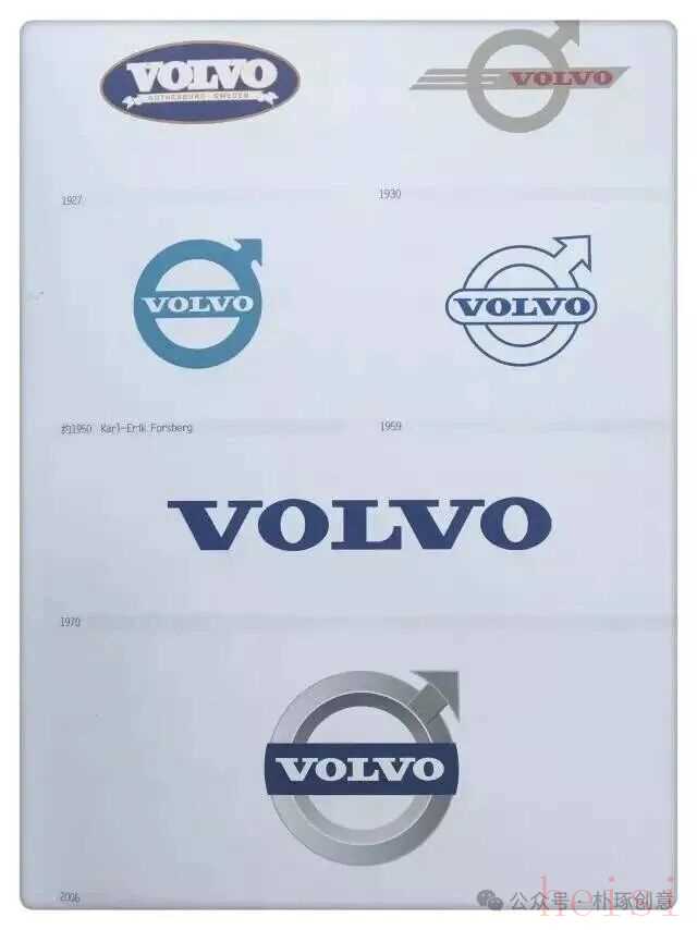 沃爾沃1927 年:首版 LOGO 為圓形紋章,包含鐵砧、箭頭等元素,象征 “鋼鐵工業(yè)與耐用性”,適配瑞典重工業(yè)背景;1930 年:加入 “圓圈內箭頭” 符號(源自煉金術的火星符號),象征 “鐵元素”,強化 “安全耐用” 的產品屬性;1960 年代:簡化紋章裝飾,突出 “Volvo” 文字與箭頭符號,藍色主色調固定,傳遞 “可靠、安全” 的品牌聯(lián)想;現(xiàn)代:僅去除立體陰影,優(yōu)化箭頭線條的圓潤度,核心 “圓圈箭頭 + 藍色文字” 符號始終未變,成為 “汽車安全” 的全球代名詞。汽車行業(yè)的差異化核心是 “將核心賣點視覺化”。沃爾沃用 “箭頭符號” 將 “安全、耐用” 的抽象賣點轉化為具象記憶,百年不變的符號讓消費者形成 “看到沃爾沃標志 = 想到安全” 的條件反射。這種 “核心賣點符號化固化” 的模式,成為制造業(yè)品牌 “建立差異化認知” 的標桿。