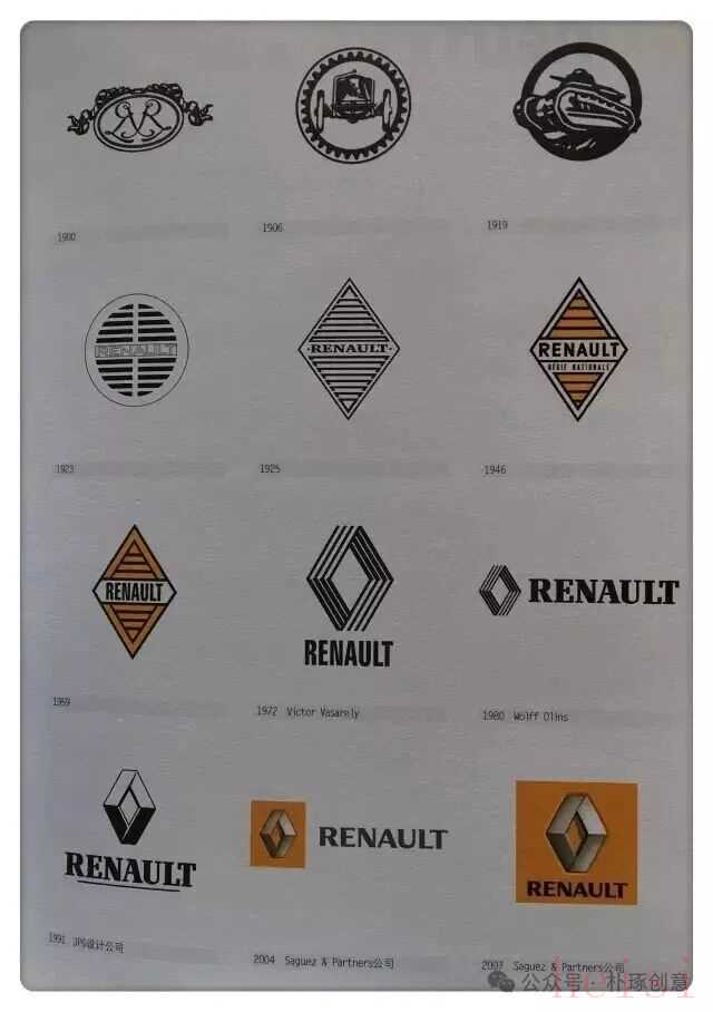 雷諾1900 年:首版 LOGO 為交織的雙 “R” 字母(雷諾兄弟姓氏首字母),鑲嵌于新藝術派徽章中,僅用于內部文件,未作為車標使用,品牌識別主要依賴腳踏板上的 “RENAULT-FRERES” 文字;1906 年:以首屆法國大獎賽冠軍車頭輪廓為原型,外圈采用齒輪造型,1919 年后融入 FT17 坦克輪廓,紀念其軍工貢獻,視覺上強化 “工業(yè)實力” 屬性;1925 年:確立 “鉆石” 核心符號,棱角分明的幾何形狀適配當時車型的雙平面發(fā)動機罩,1936 年搭配 “雷諾,法國之車” 口號,成為國家工業(yè)象征;1972 年:歐普藝術創(chuàng)始人瓦薩雷利設計新標,以平行線條塑造鉆石造型,簡約且富科技感,首次脫離文字獨立存在,適配汽車設計的現(xiàn)代化趨勢;2015 年:優(yōu)化鉆石線條為垂直立體造型,置于格柵中央,搭配 “Passion for life” 口號,弱化工業(yè)感,強化情感連接,適配新能源時代的品牌轉型。汽車品牌的核心命題是 “平衡工業(yè)基因與情感價值”。雷諾以 “鉆石標” 為核心,從早期的家族標識、軍工符號,到藝術化演繹與情感化表達,每一步都將國家工業(yè)實力與時代審美結合。這種 “核心符號 + 文化 / 藝術賦能” 的路徑,讓品牌既承載歷史厚重感,又保持設計活力,為歐洲汽車品牌 “用視覺傳遞國家身份與品牌溫度” 提供了范本。