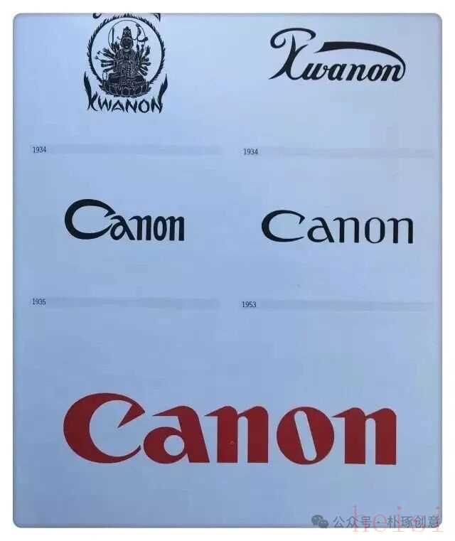 佳能1934 年:首版 LOGO 為 “Kwanon”(觀音)文字 + 千手觀音浮雕圖案,融合佛教文化,傳遞 “打造頂級相機” 的愿景,但宗教元素限制全球傳播;1935 年:更名 “Canon”(源自拉丁語 “標準、準則”),推出首版字母 LOGO,“C” 字母頂端向內彎曲的獨特設計,既區(qū)別于歐美字體,又傳遞 “精準” 的產品屬性;1955 年:優(yōu)化字體線條,固定 “紅色字母” 視覺,紅色象征活力與專業(yè),適配相機、打印機等多品類擴張,核心字母造型與色彩至今未變;現(xiàn)代:僅在應用場景中微調大小比例,紅色 “Canon” 字母始終保持全球統(tǒng)一識別。科技制造品牌的全球化核心是 “視覺符號去地域化”。佳能從宗教化符號轉向 “通用化字母標識”,用獨特字體與固定色彩構建跨文化認知,證明 “簡潔 + 獨特細節(jié)” 是全球化符號的關鍵。這種 “地域符號替換為通用語言” 的策略,成為本土品牌走向全球的視覺參考。
