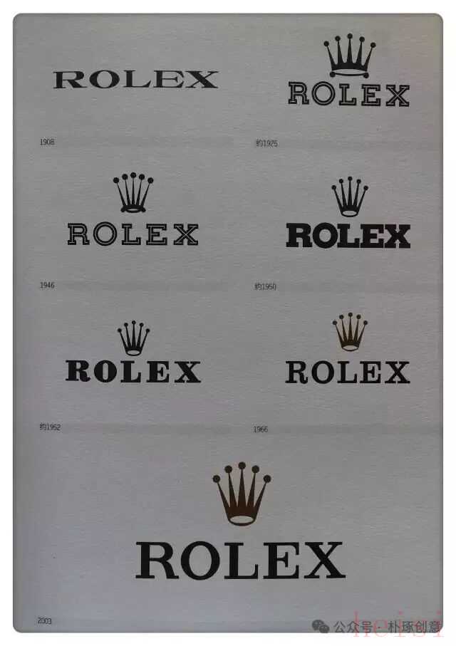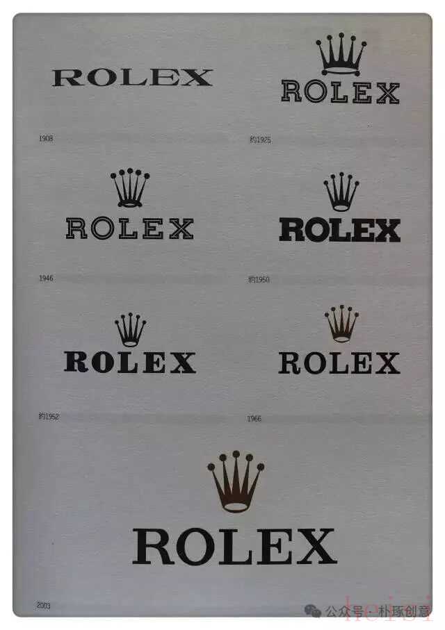 勞力士1908 年:“Rolex” 文字 + 簡單皇冠,襯線字體,黑白配色用于懷表,傳遞 “高端懷表” 定位;1925 年:皇冠改為五尖造型(更精致),文字改為無襯線,金色調適配腕表轉型;1950 年:確立 “綠底金字” 經典配色(綠色象征稀有,金色代表尊貴),激光雕刻于表盤,強化 “高端可靠”;后續(xù)僅微調皇冠細節(jié)與字間距,核心符號始終不變。奢侈品的核心訴求是 “用穩(wěn)定視覺沉淀價值”。勞力士拒絕追逐潮流,用 “五尖皇冠 + 綠底金字” 的固定符號,讓 LOGO 成為 “成功、品質” 的直接象征 —— 消費者看到綠底金字,就自然關聯(lián) “高端腕表”,這種 “符號固化” 策略,為奢侈品行業(yè)建立了 “視覺穩(wěn)定性 = 信賴感” 的準則:頻繁更換 LOGO 會稀釋品牌價值。