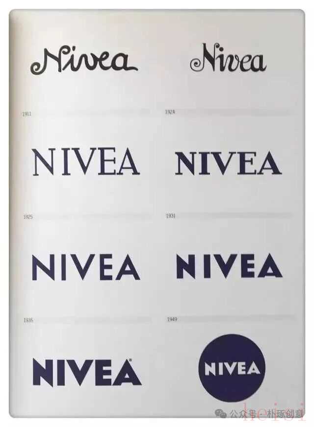 妮維雅1911 年:首版 LOGO 為手寫體 “NIVEA” 搭配藍色圓形,“NIVEA” 源自拉丁語 “雪白”,呼應護膚品的美白功效,藍色象征 “純凈、溫和”;1930 年代:優(yōu)化字體為印刷體,增強清晰度,藍色圓形邊緣更規(guī)整,適配產品包裝的規(guī)?;a;1960 年代:去除手寫體痕跡,改為簡潔無襯線字體,藍色飽和度略提,讓 LOGO 在貨架上更易識別;現(xiàn)代:僅微調字體間距與藍色明度,核心 “藍色圓形 + NIVEA 文字” 符號始終未變,適配面霜罐、乳液瓶、電商詳情頁等多場景。日化品牌的核心訴求是 “用視覺傳遞產品屬性與信任感”。妮維雅以 “藍色圓形” 為核心,將 “溫和、純凈” 的護膚理念轉化為視覺記憶,百年不變的符號讓消費者形成 “藍色圓形 = 可靠護膚” 的條件反射。這種 “產品屬性視覺化 + 符號長期固化” 的策略,為日化品牌 “建立長期消費信任” 提供了范本。