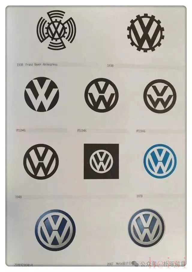 寶馬917 年:初創(chuàng)期 LOGO 為圓形,藍白配色源自巴伐利亞州旗,內部加入螺旋槳圖案,直接呼應品牌早期 “航空發(fā)動機制造” 的核心業(yè)務;1923 年:轉型汽車生產后,保留藍白圓形框架,去除螺旋槳具象圖案,簡化為純粹的藍白分區(qū),既延續(xù)地域基因,又弱化單一業(yè)務屬性;1942 年:優(yōu)化圓形邊緣與藍白區(qū)塊比例,加入 “Bayerische Motoren Werke” 文字環(huán)繞,強化品牌名稱認知,適配汽車產業(yè)擴張;1997 年:去除環(huán)繞文字,藍白圓形符號獨立呈現(xiàn),線條更簡潔,增強立體光影效果,適配現(xiàn)代汽車設計的簡約審美;2020 年:推出扁平化版本,弱化立體陰影,藍白對比更鮮明,既適配數字傳播場景,又保留 “藍天白云” 的經典記憶點。