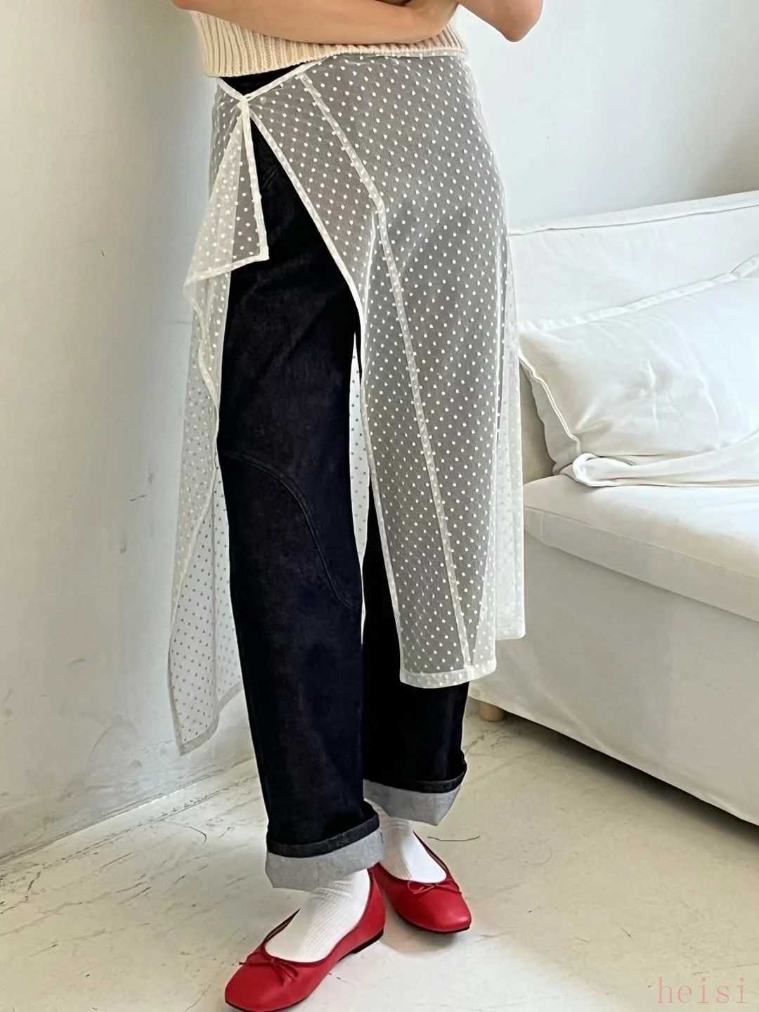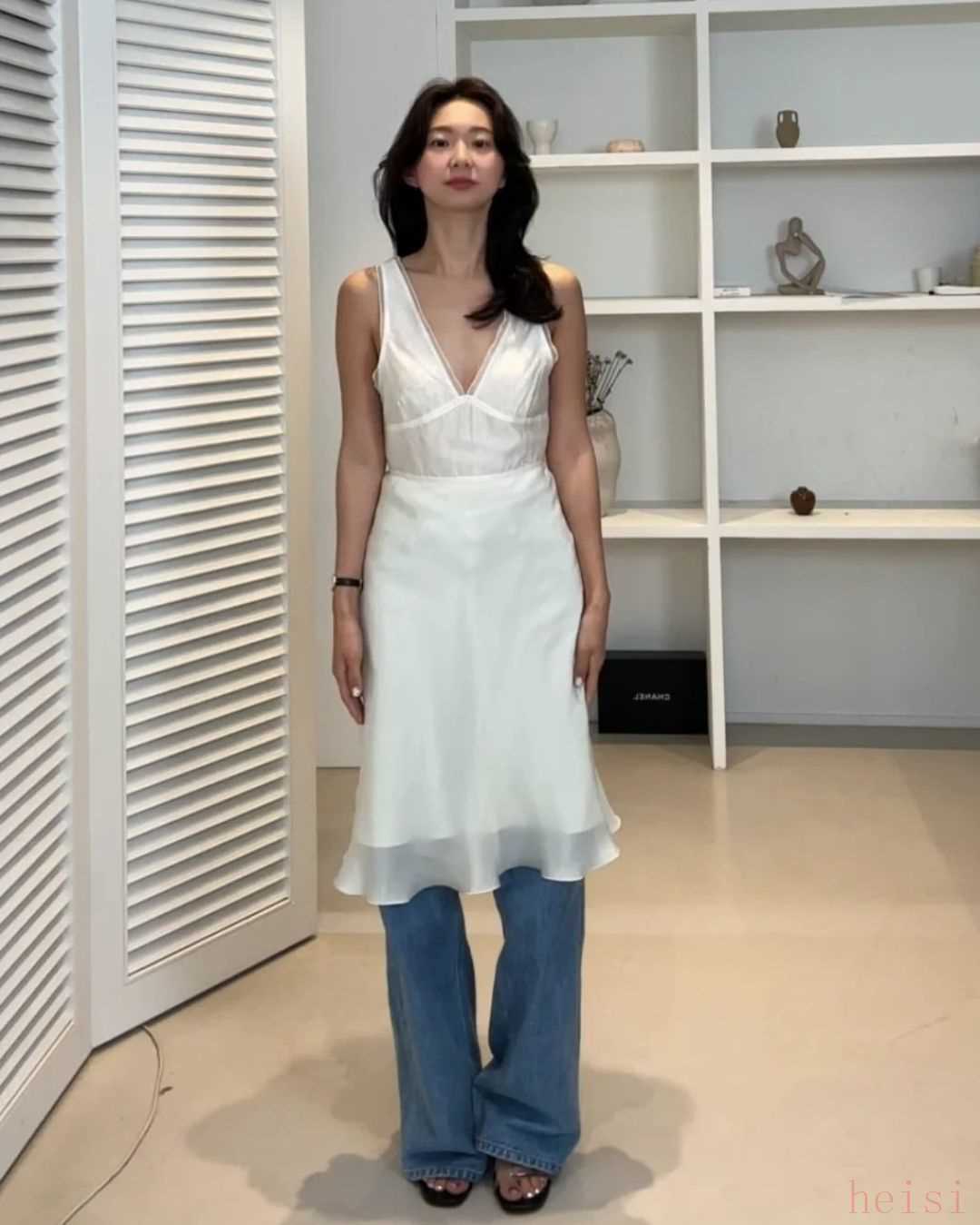 隨著氣溫上升,也不知道是誰先開了頭,蕾絲屁簾和牛仔褲這兩件沒什么關(guān)聯(lián)性的單品相遇了。足夠特別,足夠吸睛,一個(gè)讓人有些摸不著頭腦的爆款組合便誕生了。