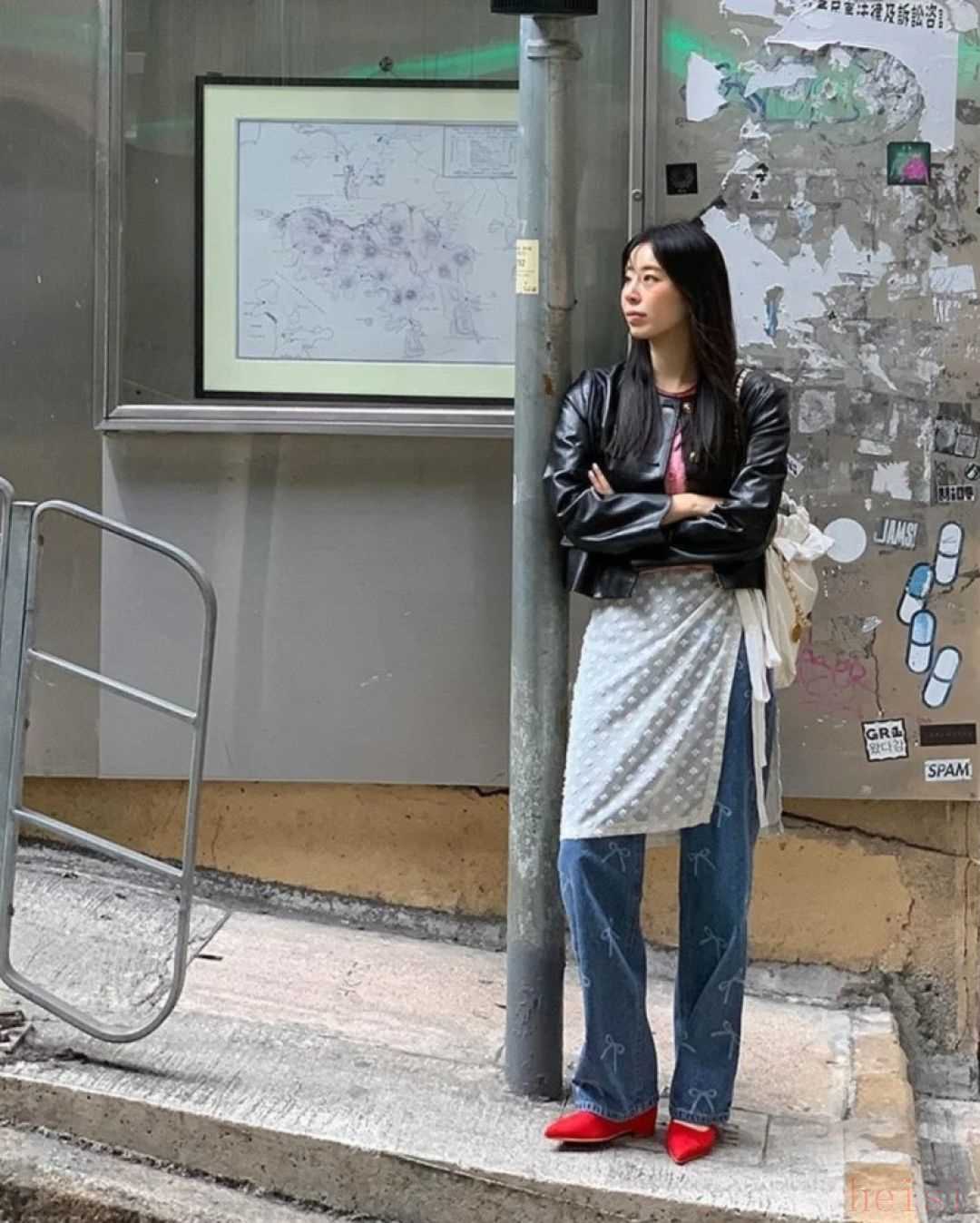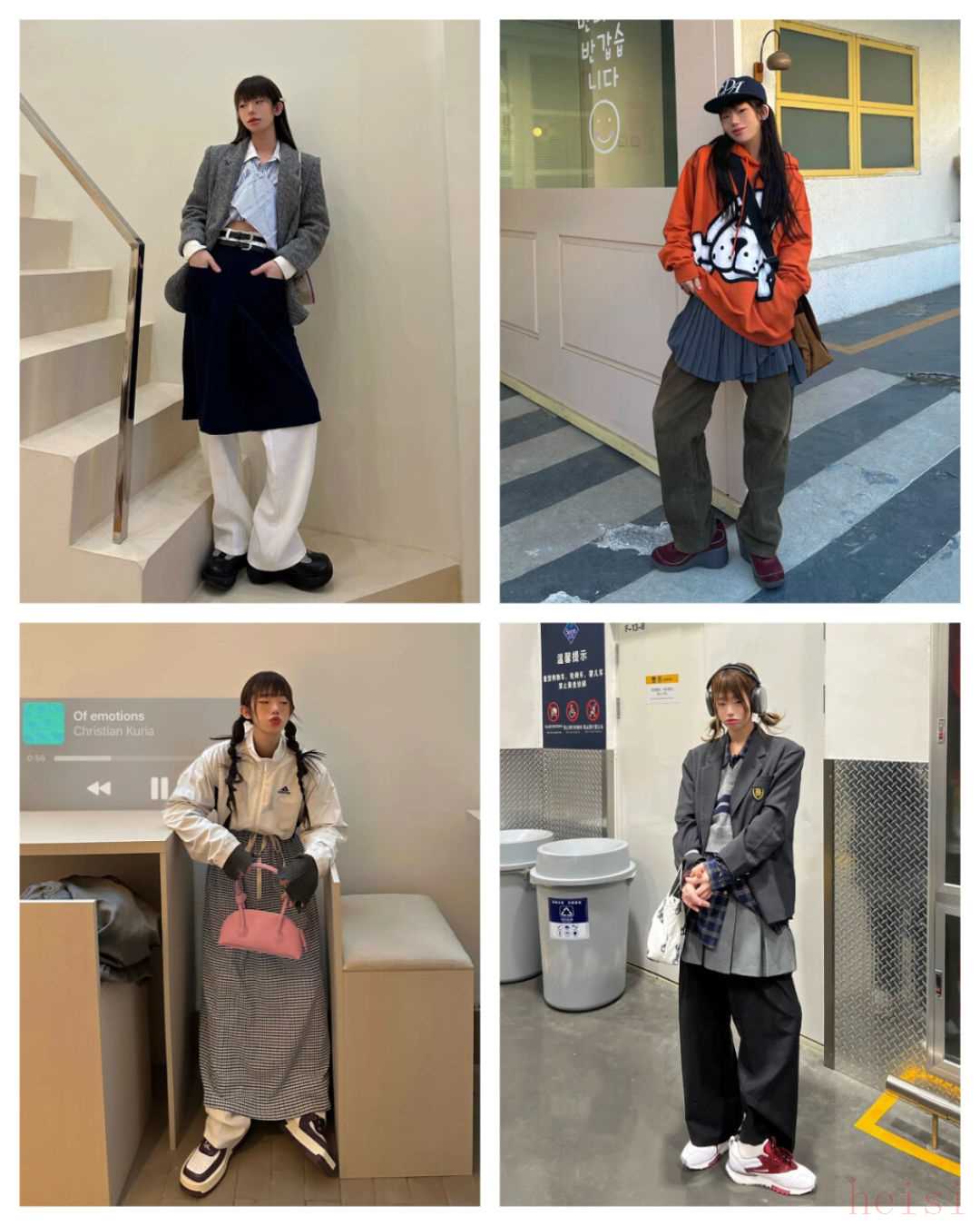 2023年秋冬,裙褲疊穿悄悄在韓國(guó)時(shí)尚圈火了一把,但因?yàn)榇钆浞绞竭€算中規(guī)中矩,并沒有在外界濺起過大的水花。