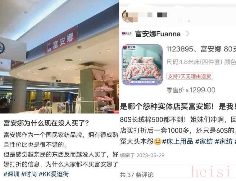 與此同時,富安娜雖長期以“藝術(shù)家紡”自居,2024年起,其1880元的四件套在電商平臺頻繁打折至699元(約3折),這種用短期降價換銷量的行為,不僅損傷品牌價值,更讓富安娜陷入“越打折越難賣”的惡性循環(huán),品牌溢價徹底崩塌。