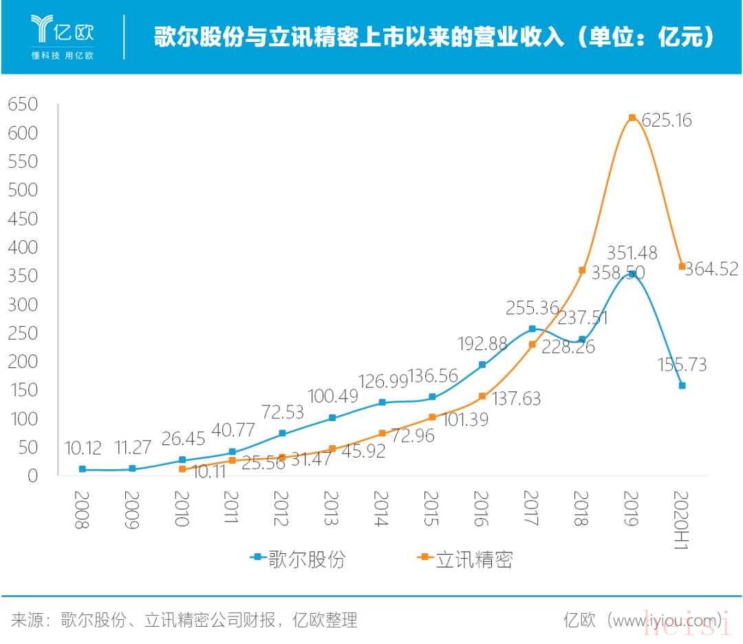 兩者最新的可比財報是2020年上半年,歌爾的營業(yè)收入為155億元,同比增長14.71%,立訊為364.52億元,同比增長70.01%。相比之下,三年時間,兩者已不是一個量級。